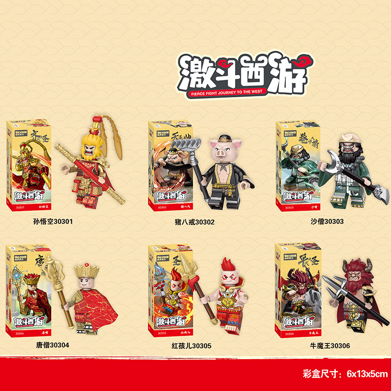 | Цвет: | 30301-06 6 Путешествие на запад, 30301 Sun Wukong, 30302 Чжу Баджи, 30303 Песчаный монах, 30304 Тан Сенг, 30305 Red Baby, 30306 NIU Demon King, NIU Демон Отец и Сын, Четыре человека группы, Sun Wukong борется с красными детьми, Sun Wukong Fighting Bull Demon King, Тан Сенг ездит на белой лошади, XH686 Бейлонг Лошадь |