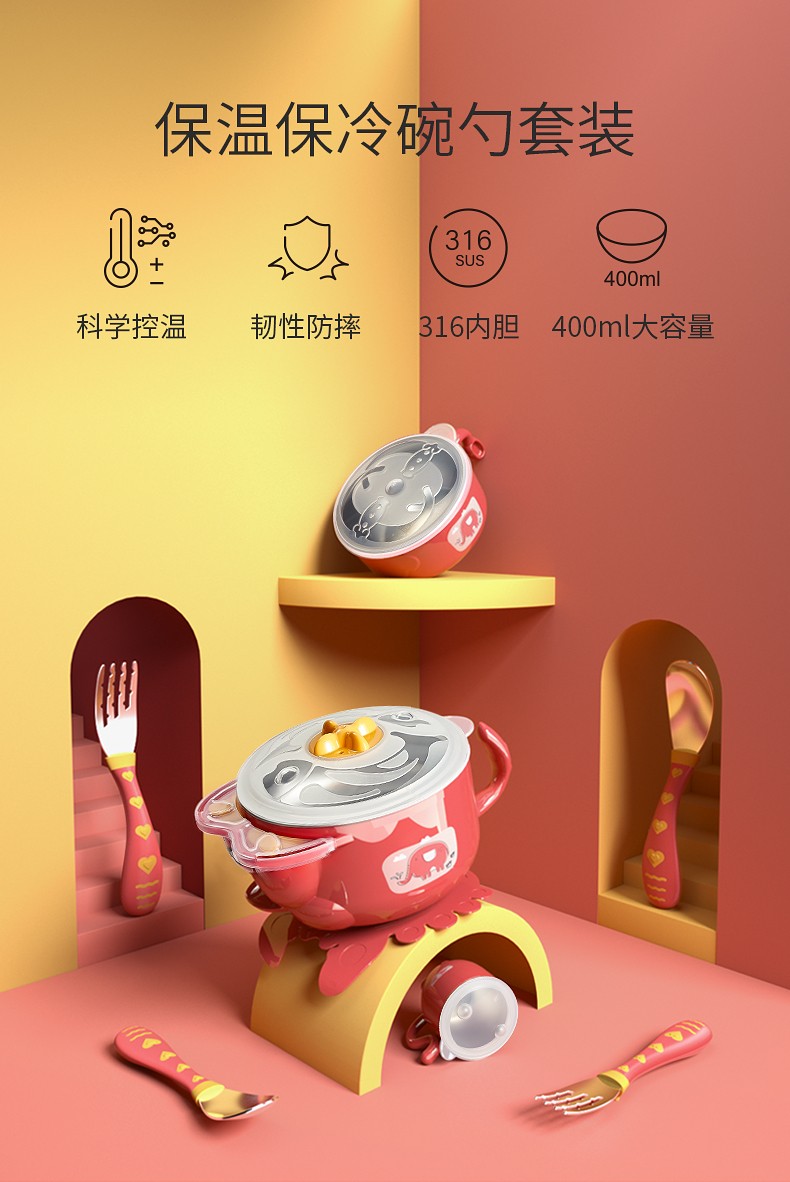 Детский увлажняющий термос, детская посуда для кормления, вилка, комплект, обеденная тарелка из нержавеющей стали