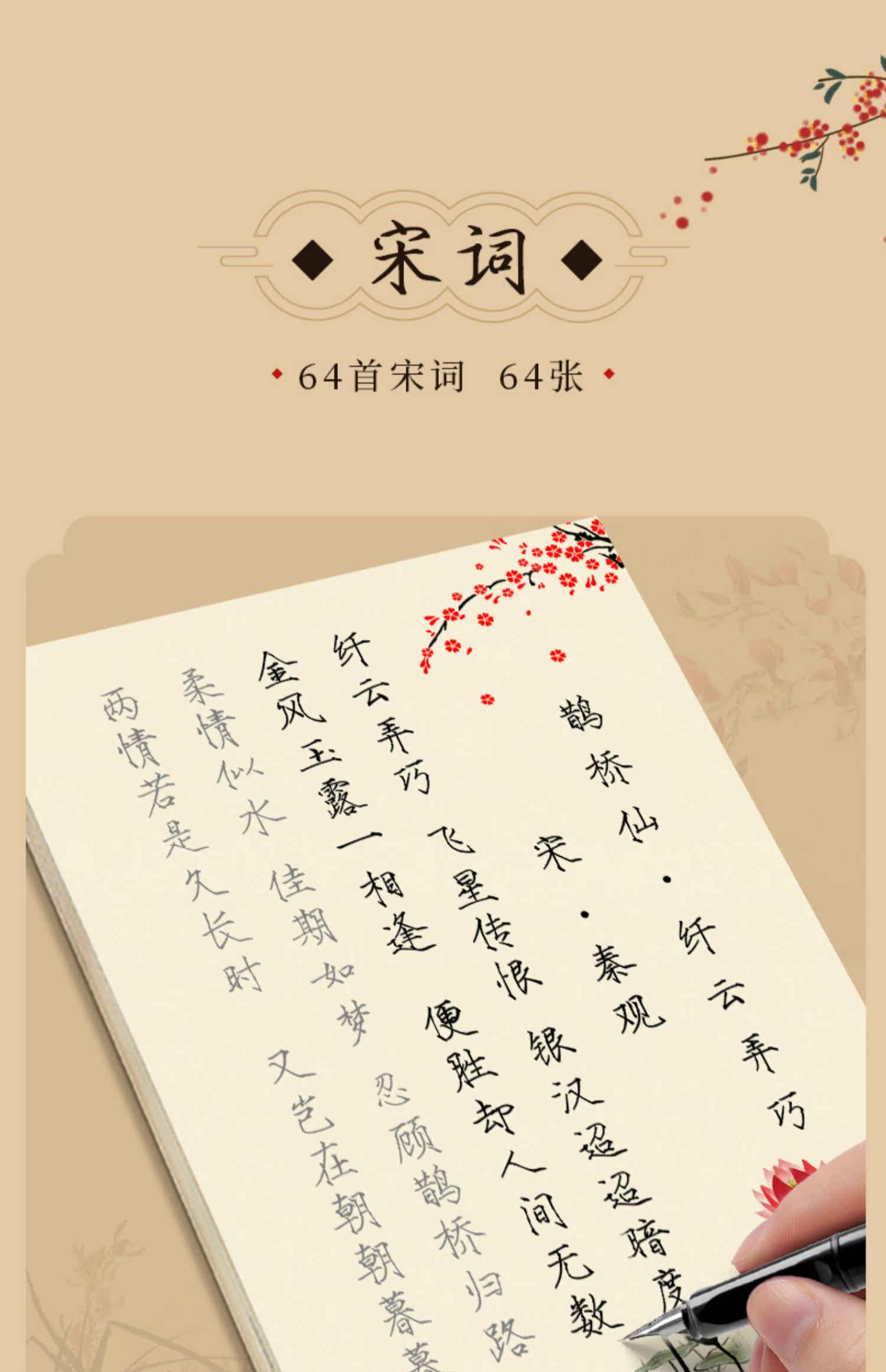 Тетрадь, каллиграфия, ручка для взрослых для начинающих подходит для мужчин и женщин, практика для школьников для письма, Танская поэзия, подходит для студента