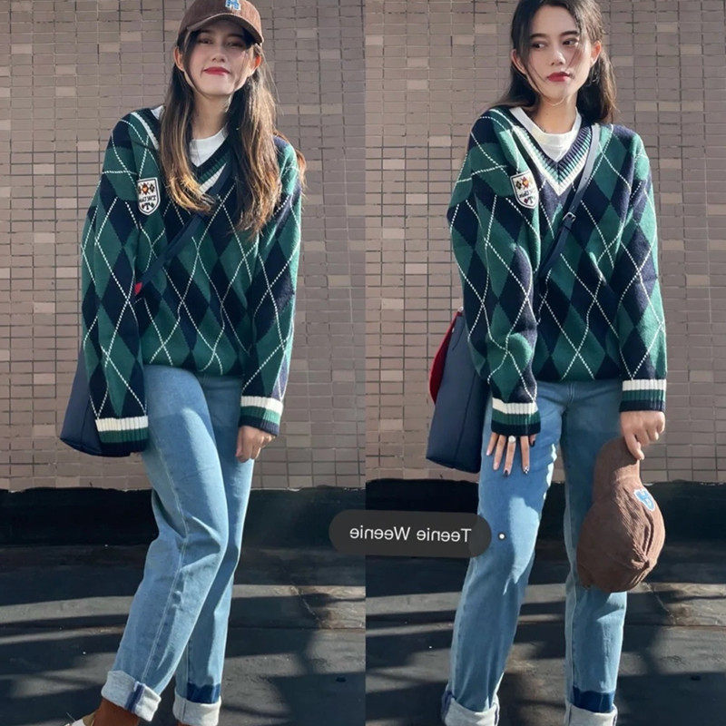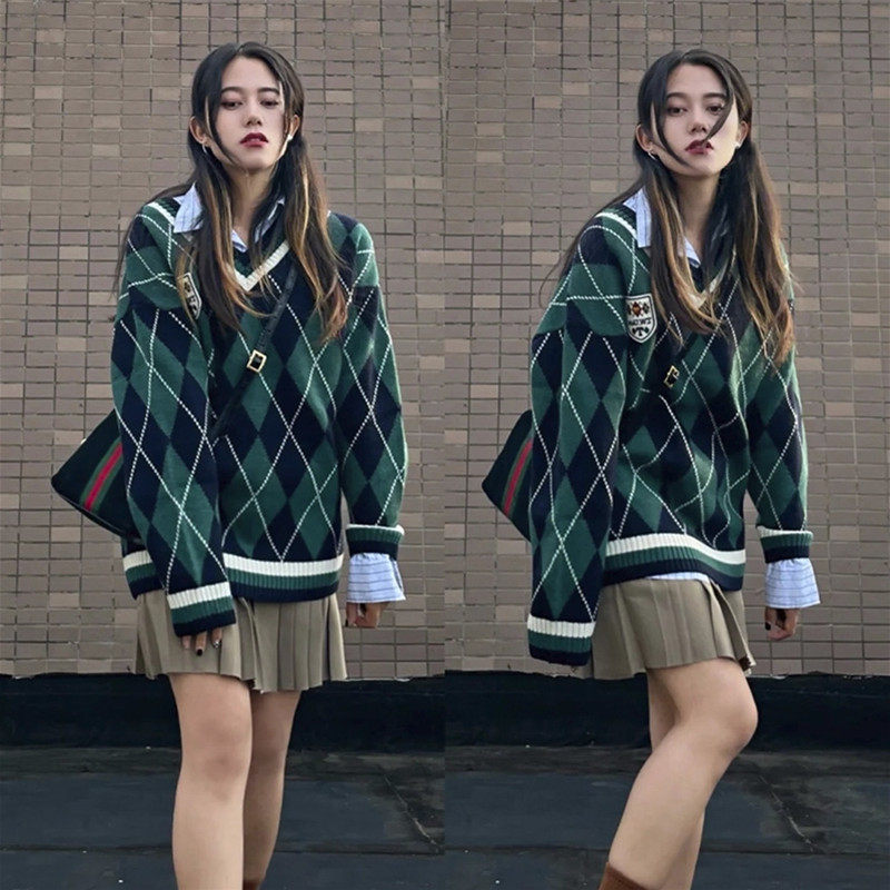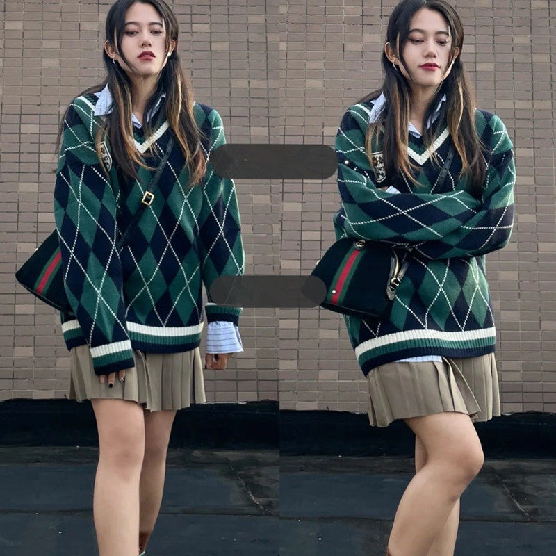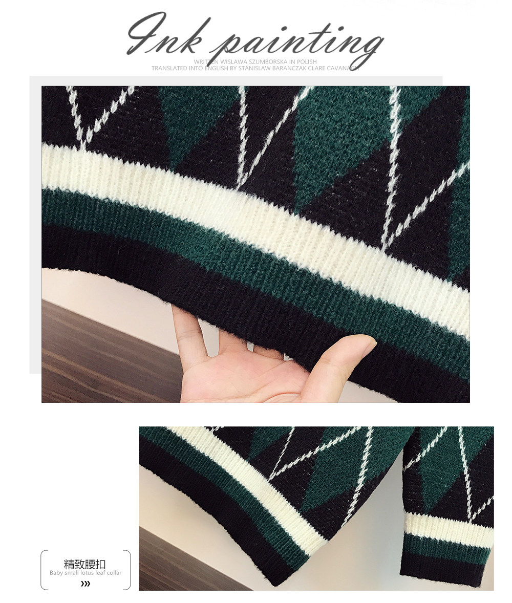 Базовый приятный телу трикотажный свитер с ромбовидным узором, большой размер, подходит для полных девушек, V-образный вырез