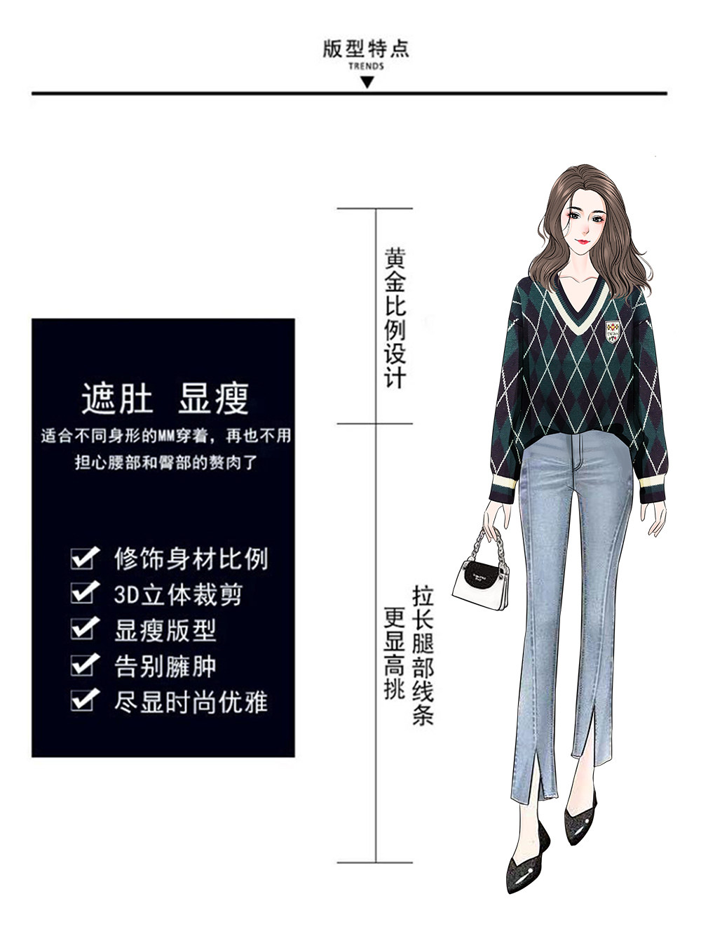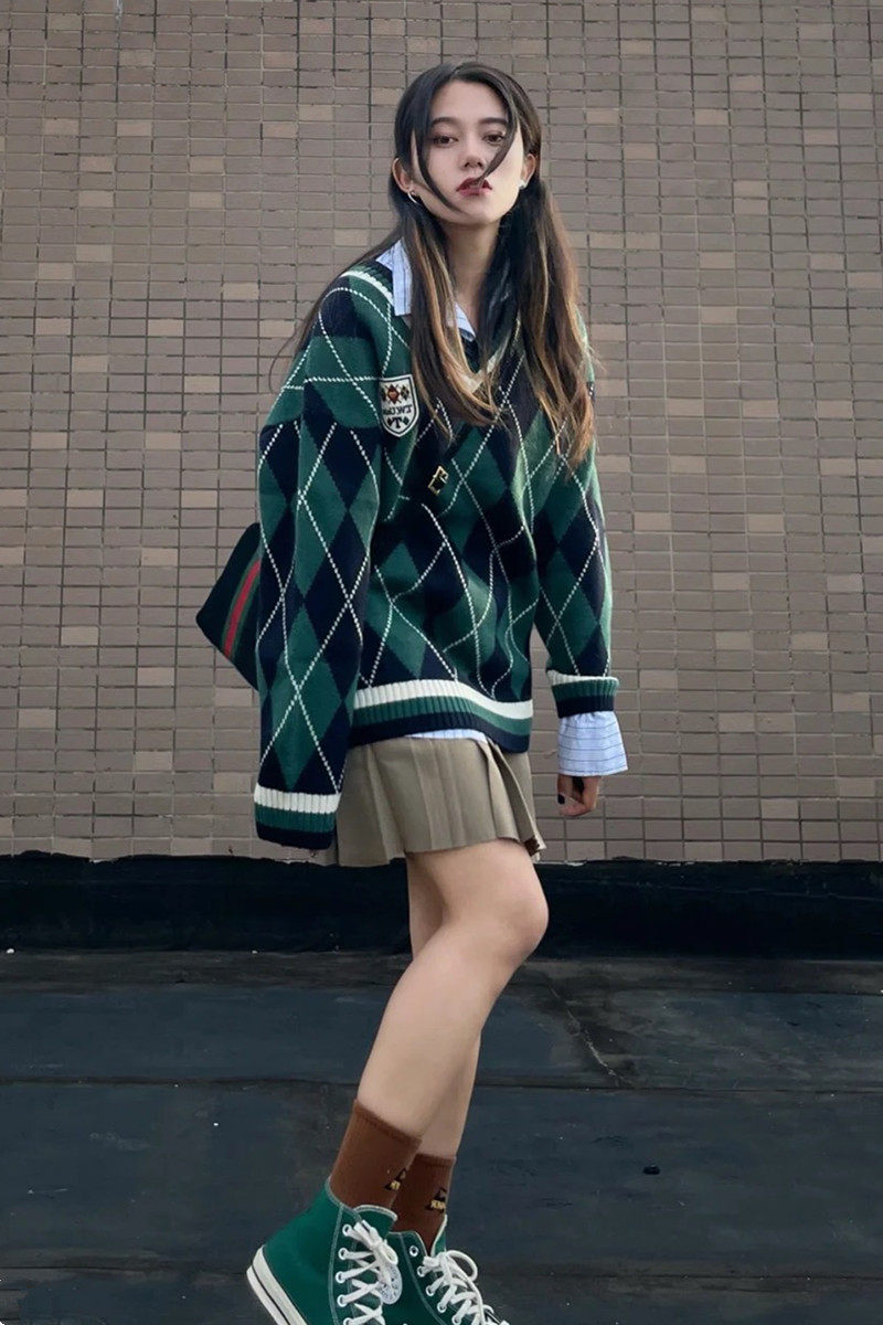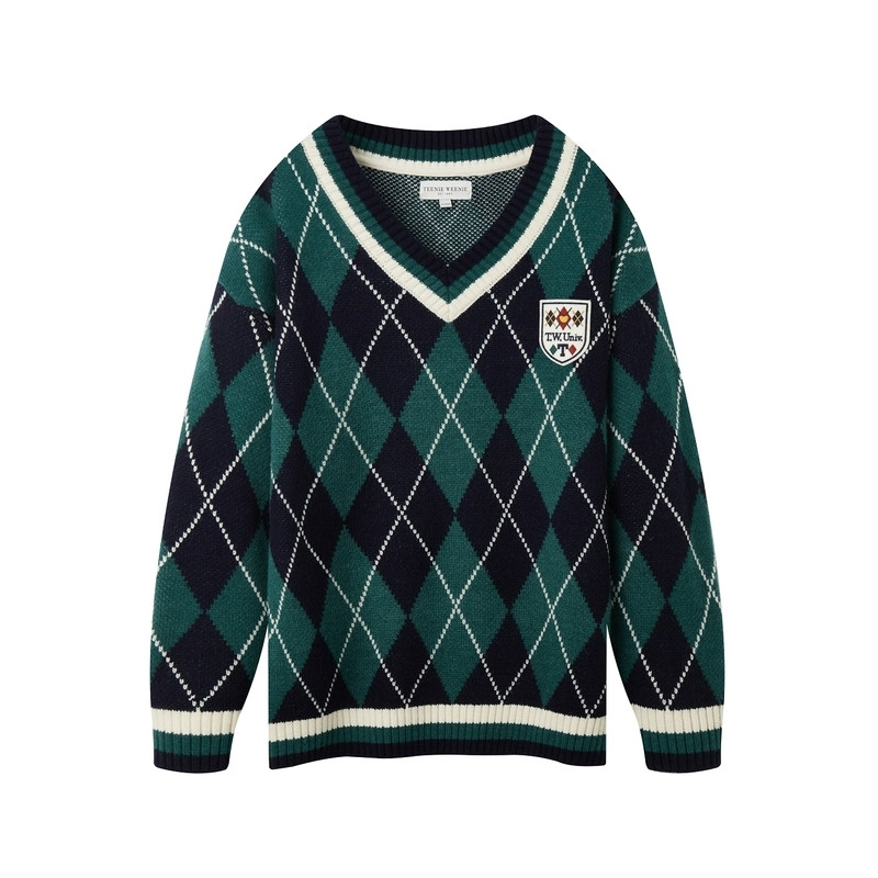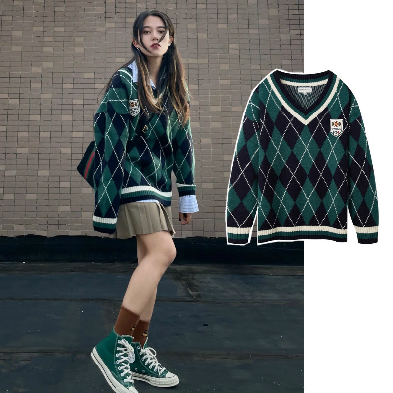 Базовый приятный телу трикотажный свитер с ромбовидным узором, большой размер, подходит для полных девушек, V-образный вырез