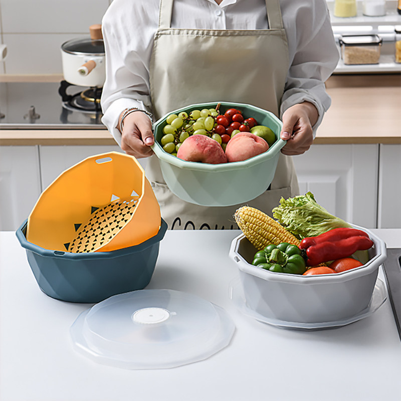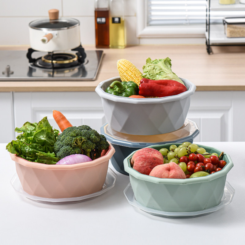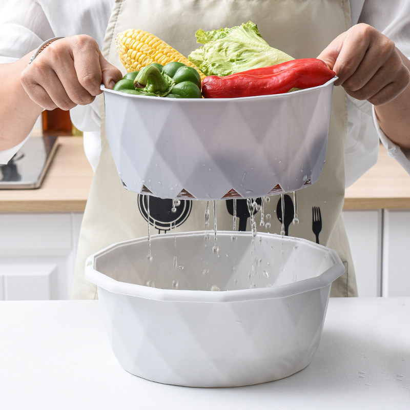 Двойная слоя покрытия пластиковой мытья корзина кухонная дренажная корзина домохозяйственная многофункциональная круглая фруктовый диск для мытья бассейн бассейн