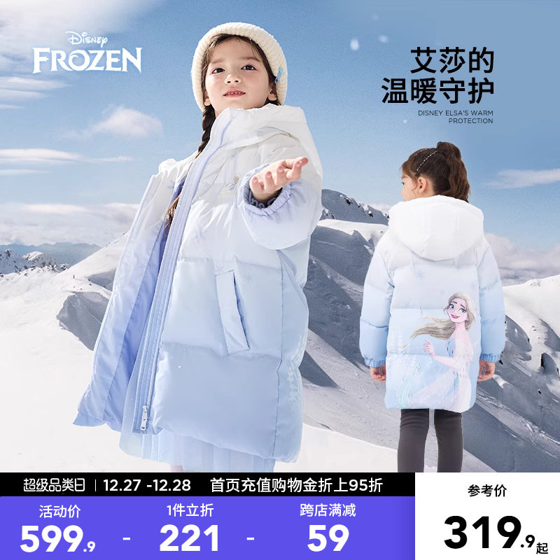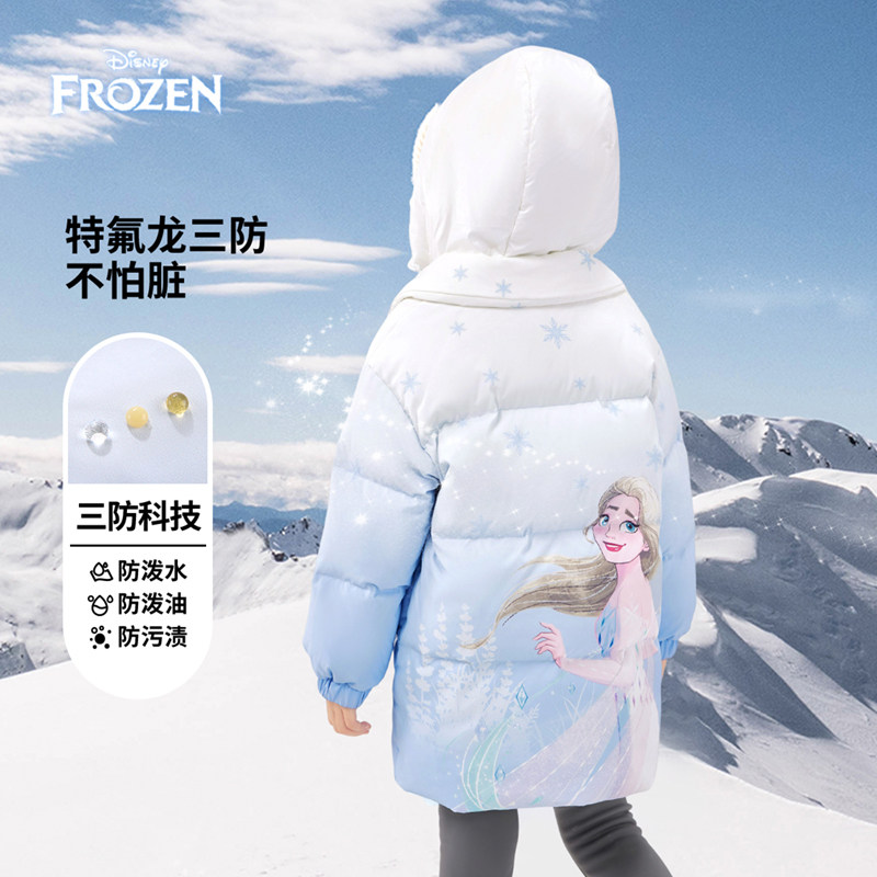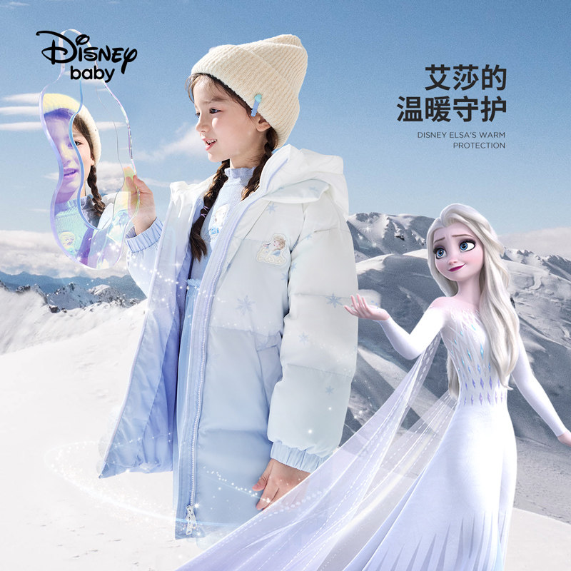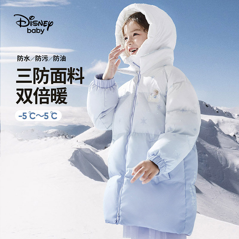 Дисней, детский пуховик, удерживающая тепло бархатная куртка, длина миди, утиный пух