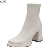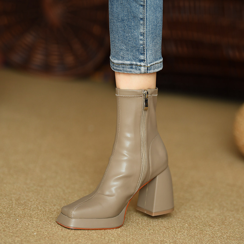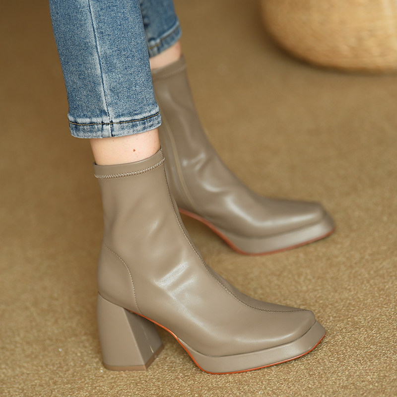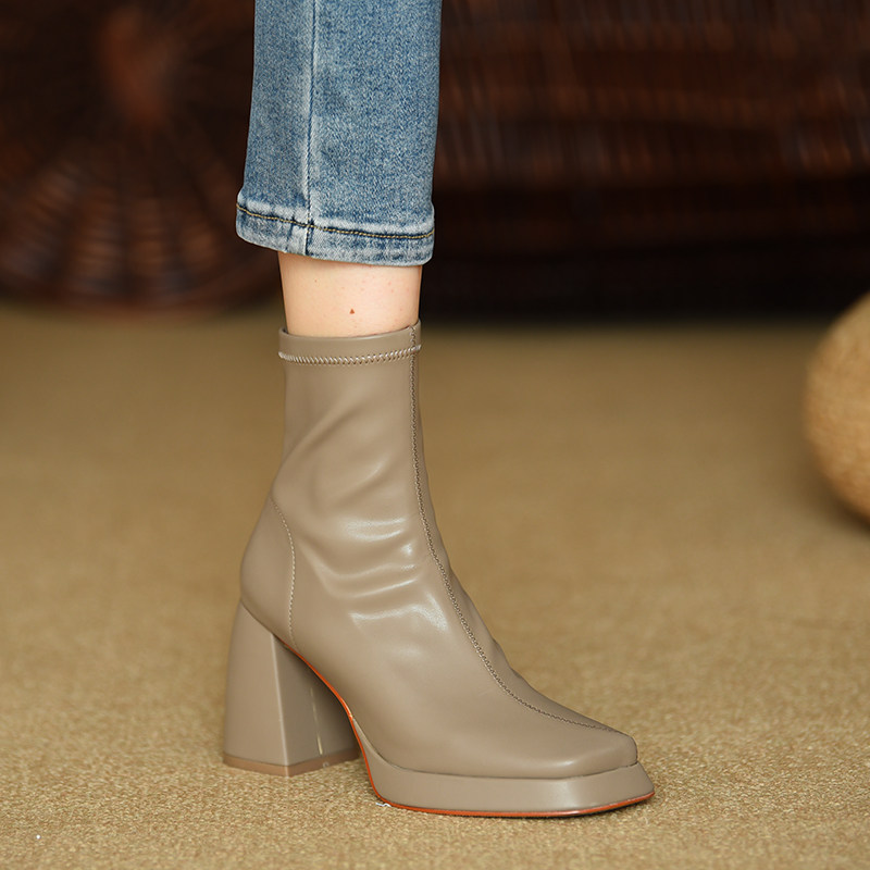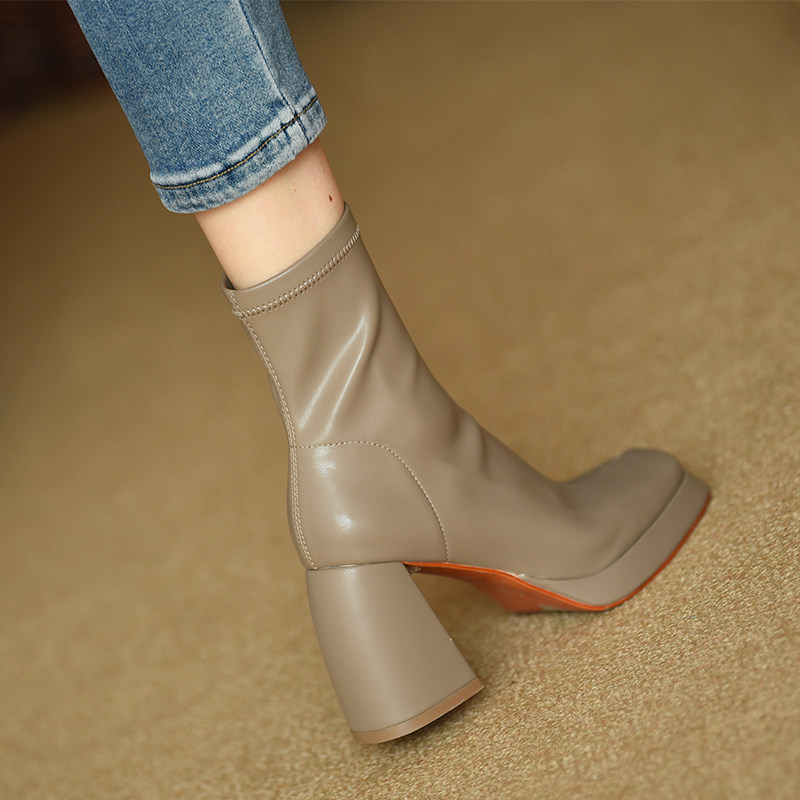 Эластичные демисезонные короткие сапоги, туфли на высоком каблуке, ботинки