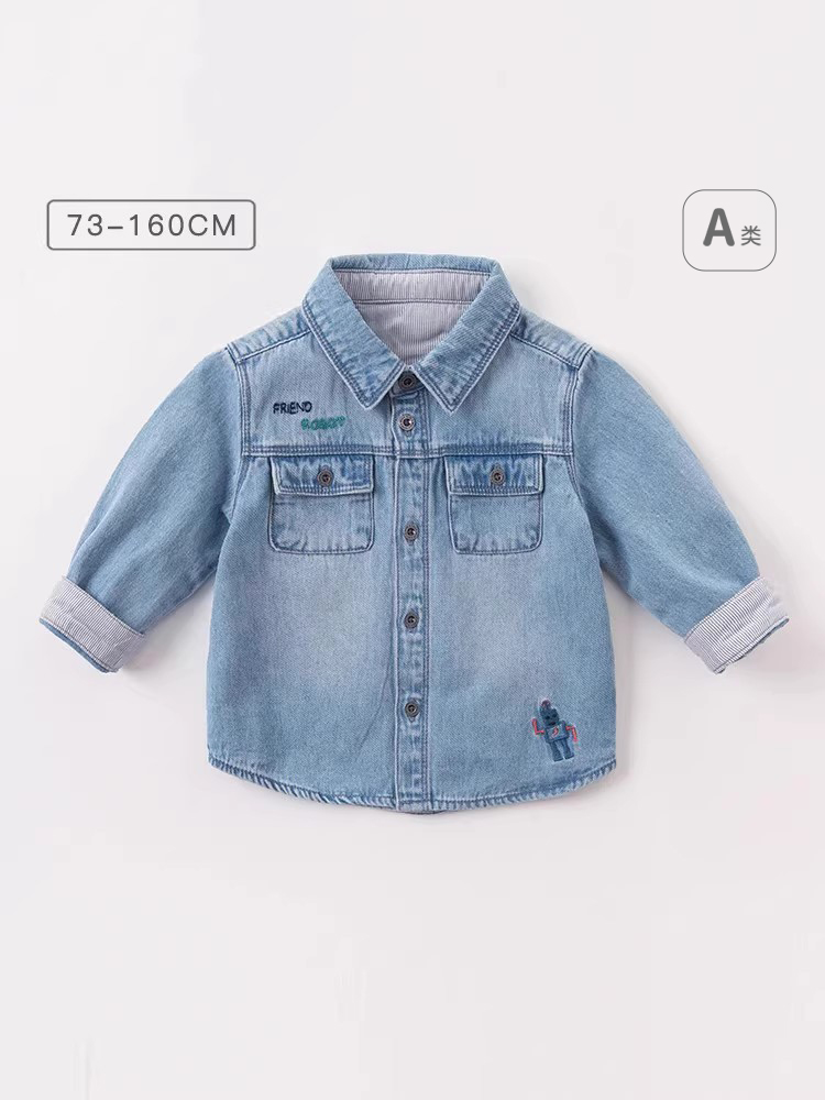 Детская рубашка для мальчиков, джинсовая осенняя куртка, детская одежда