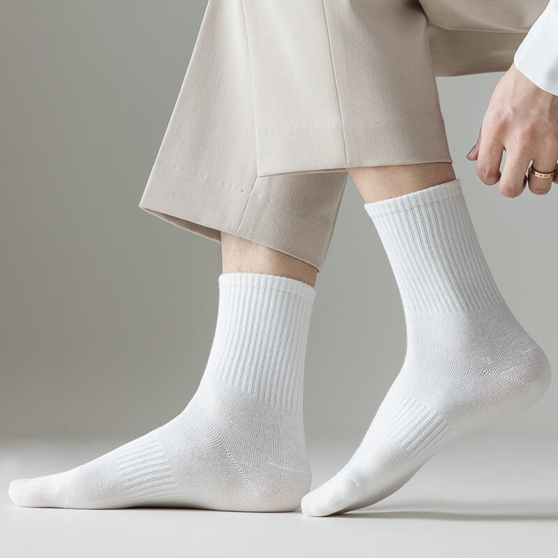 Мужские белые хлопковые осенние дезодорированные демисезонные черные носки, средней длины, впитывают пот и запах