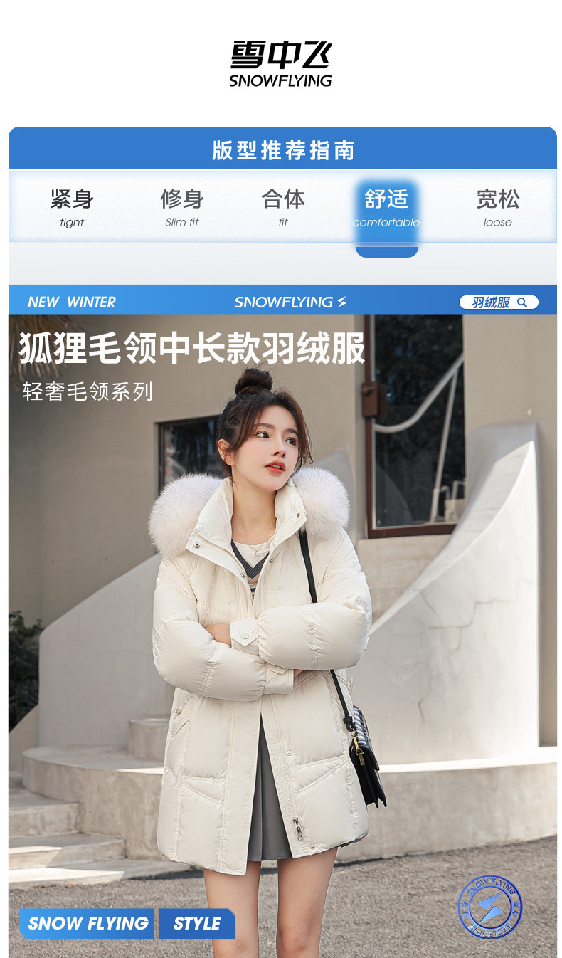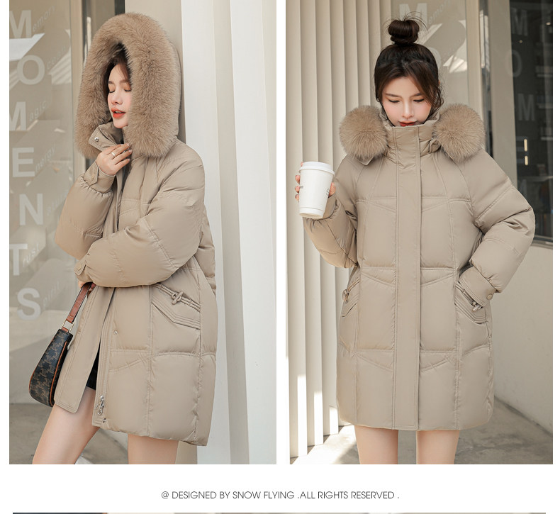 Снежный летающий зимняя зима Новая легкая роскошная роскошная лиса мао Вонг Кандидаты моды национальный прилив сладкий и прохладный середина длины взрыв куртки