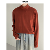 Демисезонный бархатный базовый приятный телу цветной лонгслив для отдыха, высокий воротник, оверсайз, городской стиль