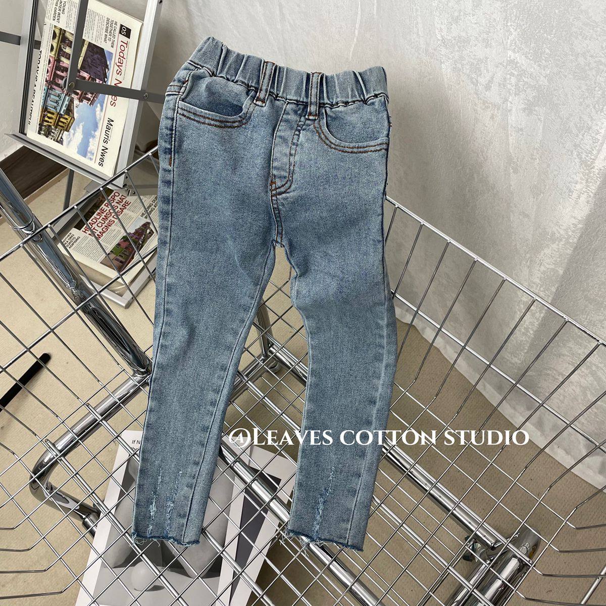 Осенние джинсы, универсальные штаны, карандаш, детская одежда, в западном стиле, в обтяжку, облегающий крой, в корейском стиле