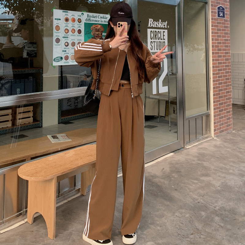 Спортивный костюм, куртка, штаны, большой размер, изысканный стиль, свободный крой, высокая талия