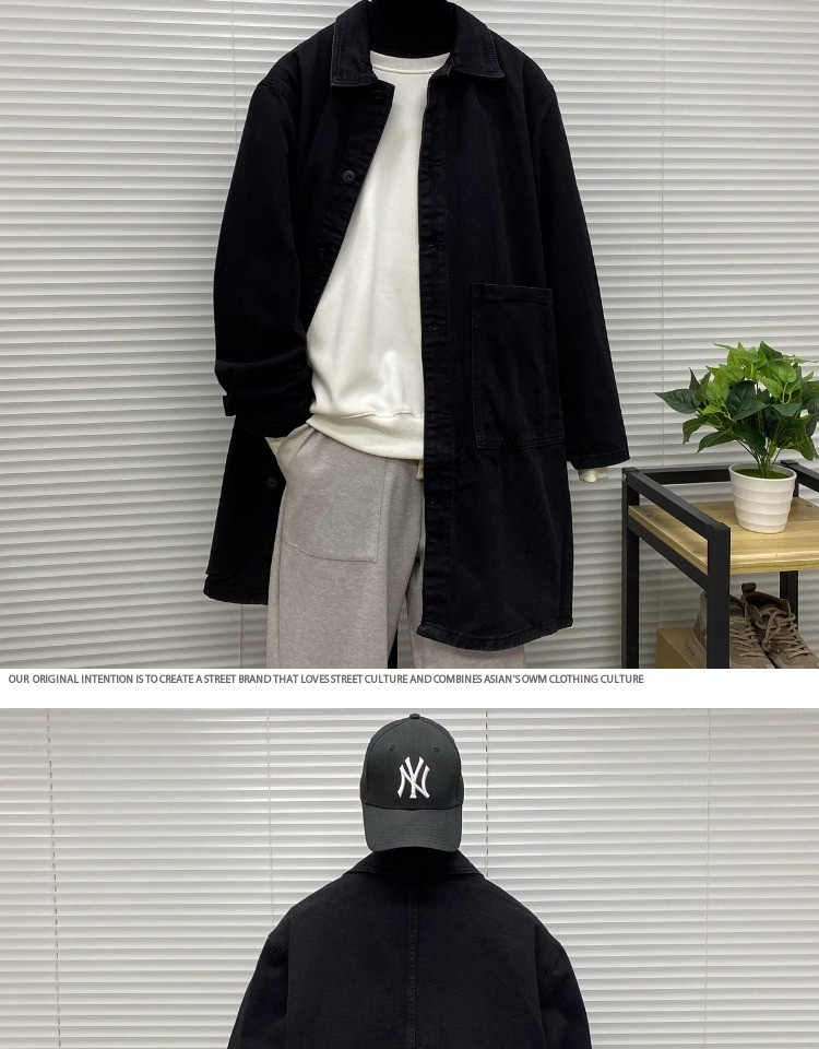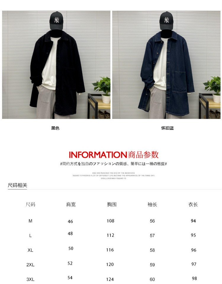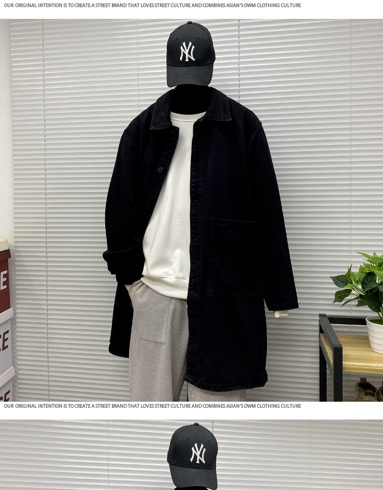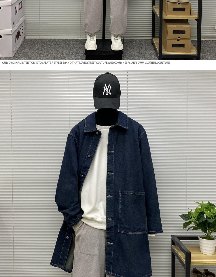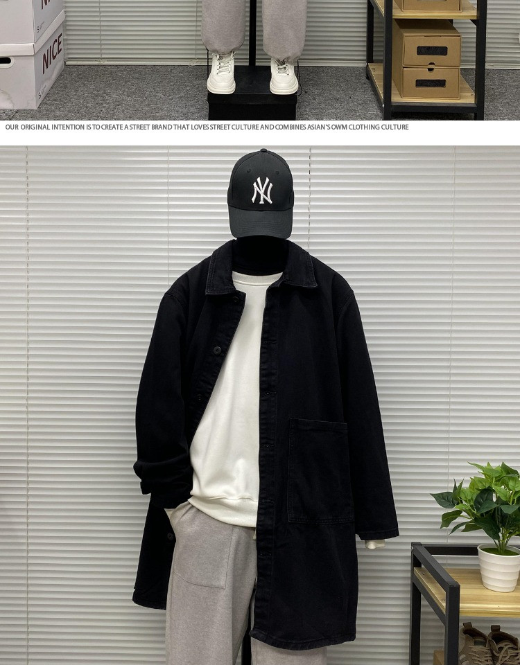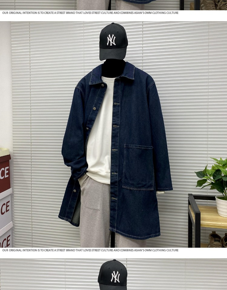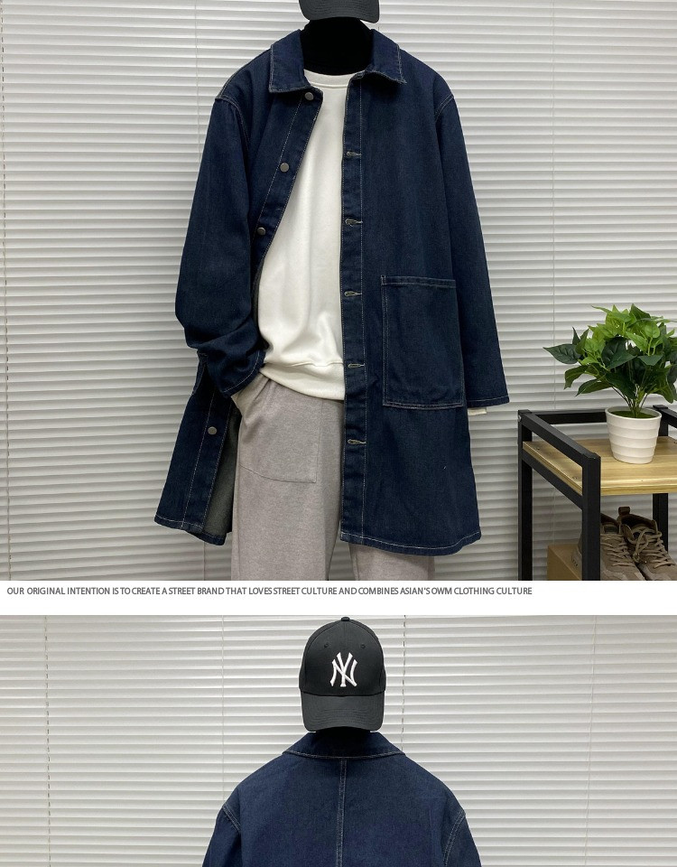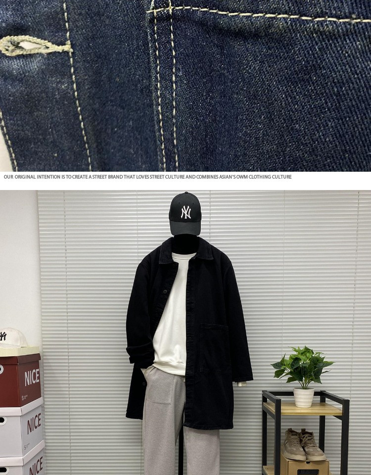 Мужская длинная джинсовая осенняя демисезонная куртка, японский ретро плащ, средней длины, большой размер, оверсайз