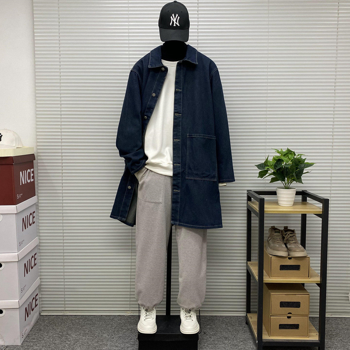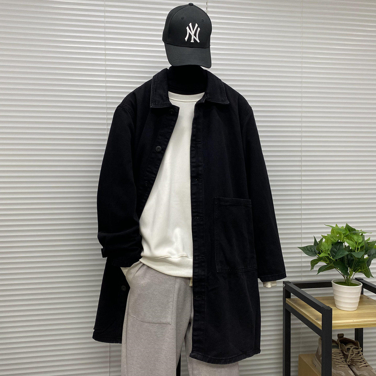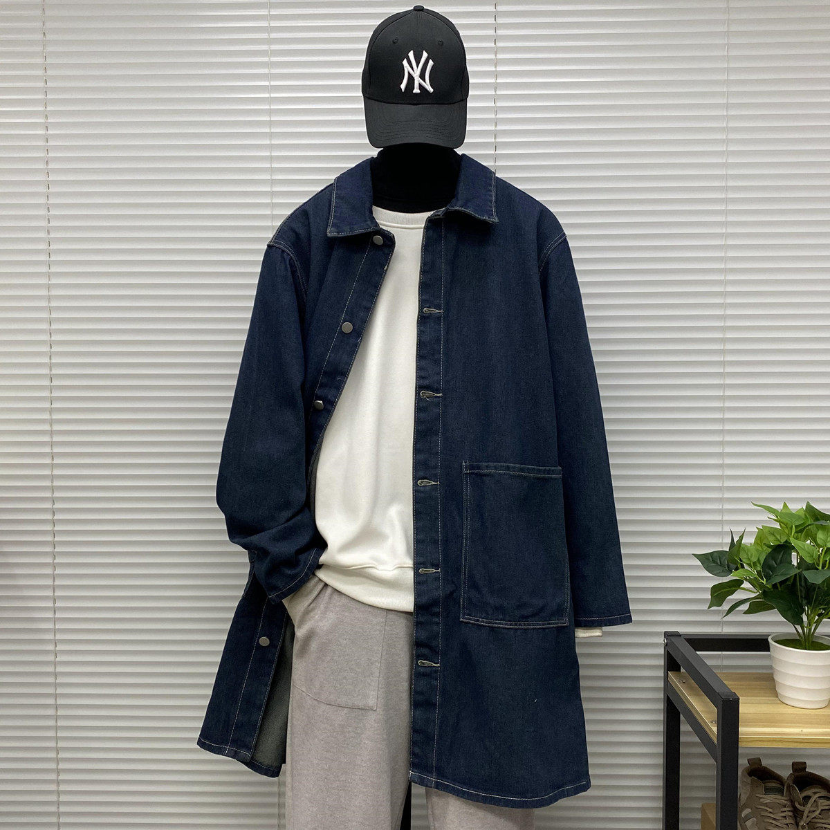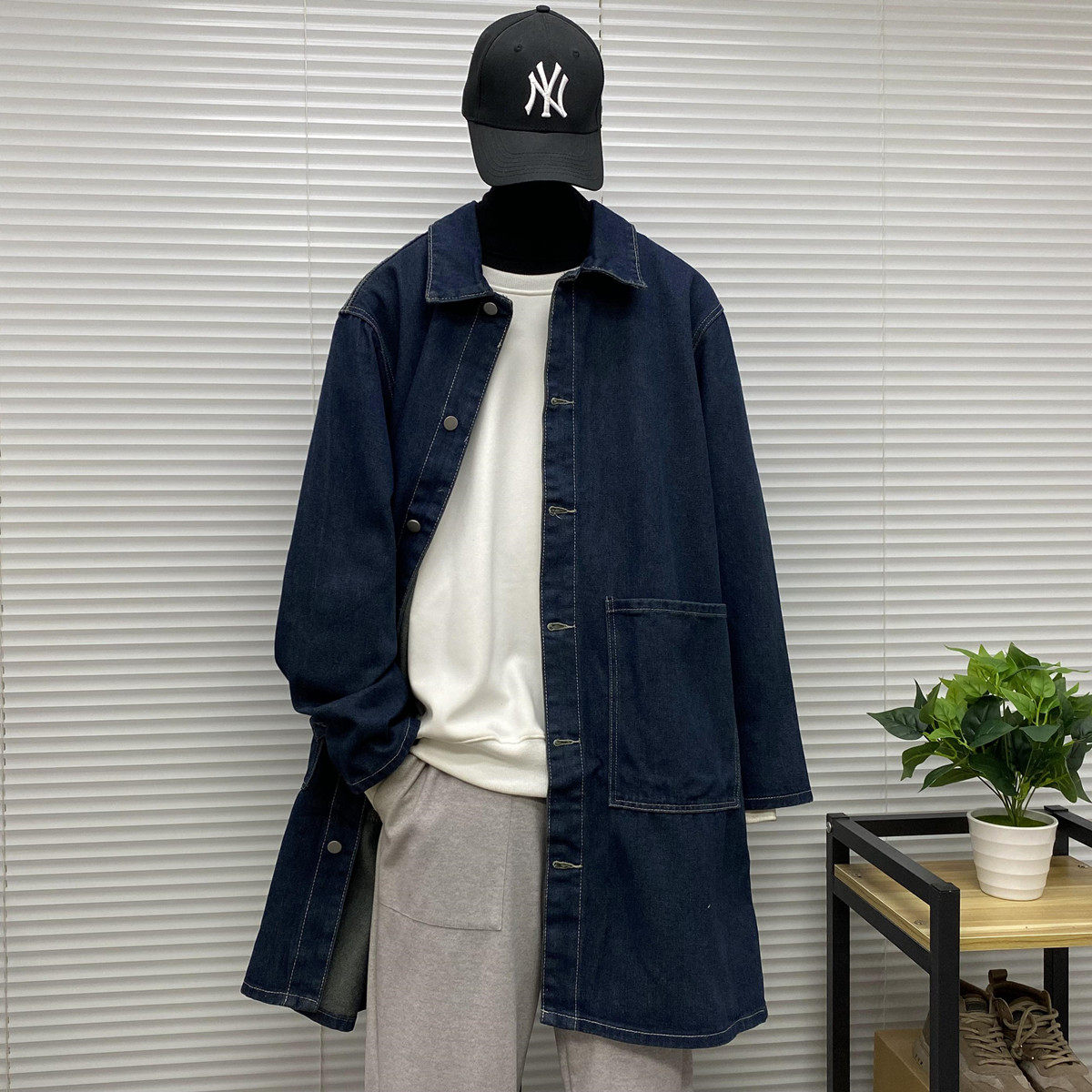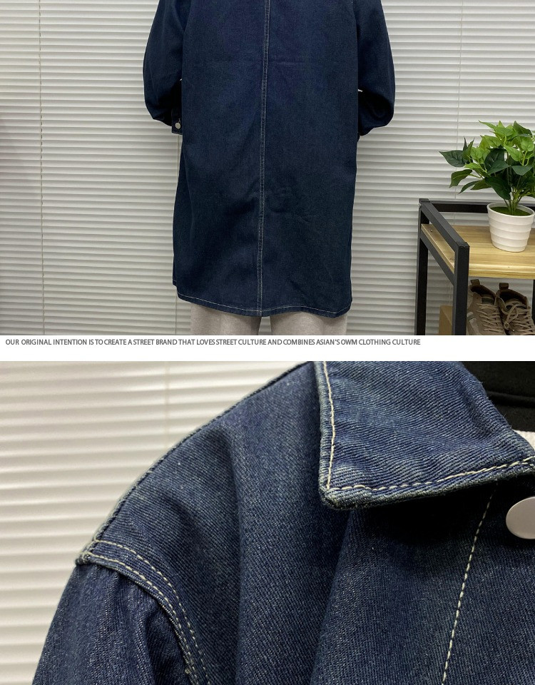 Мужская длинная джинсовая осенняя демисезонная куртка, японский ретро плащ, средней длины, большой размер, оверсайз