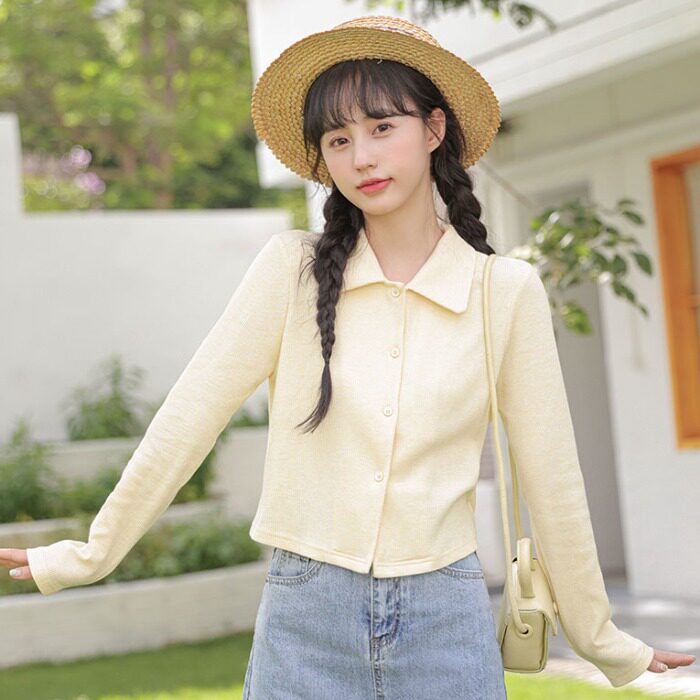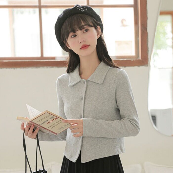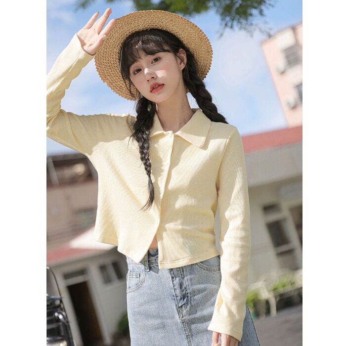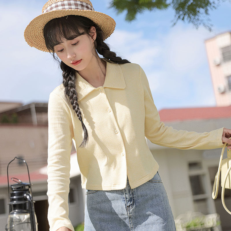 Свежий кардиган, осенняя футболка, осеннее белье для повседневной носки, лонгслив, воротник поло
