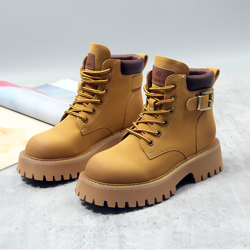 Martens, весенние демисезонные короткие сапоги в английском стиле на платформе, тренд сезона, в британском стиле, из натуральной кожи