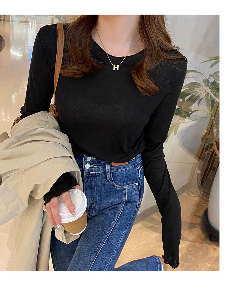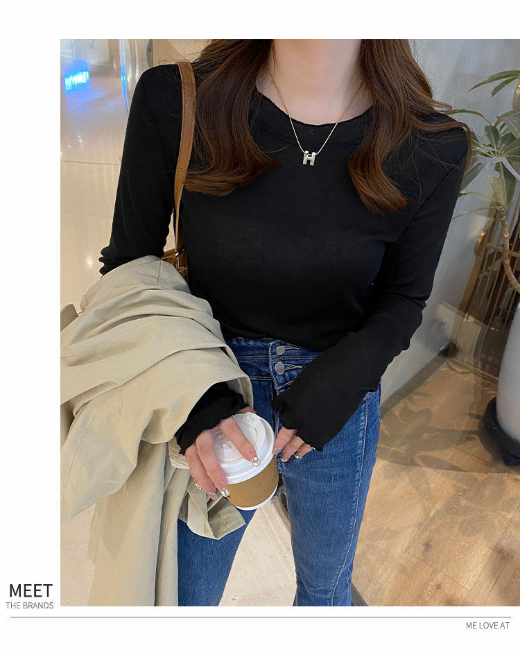 Базовый приятный телу осенний тонкий белый дизайнерский лонгслив, тренд сезона