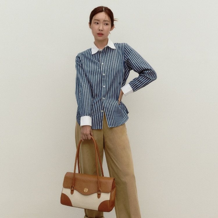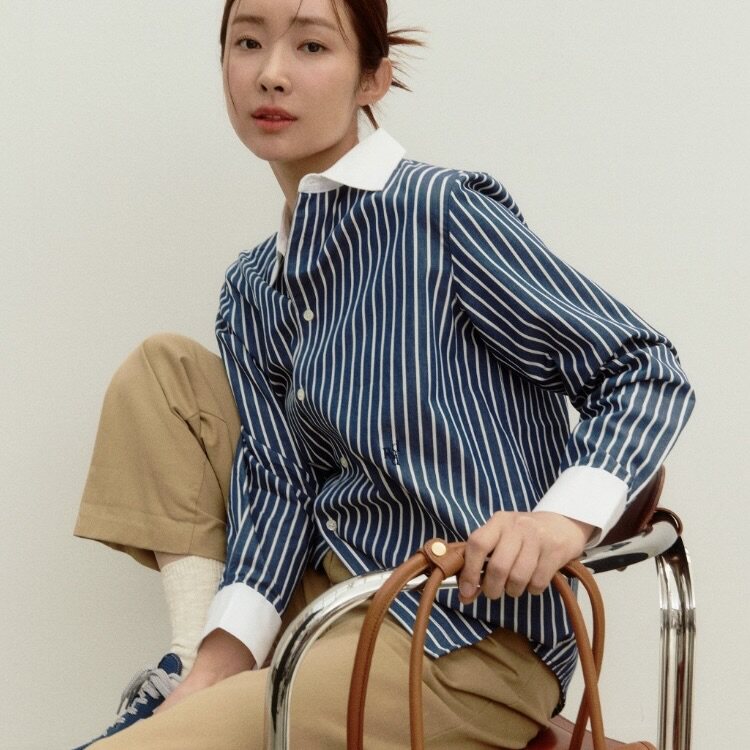 Spot Adurized Authentic Corean Dovound Color -Color -Colored Вертикальная полосатая рубашка рубашка точка точка
