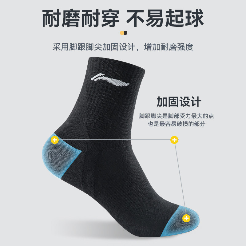 Li Ning, мужские дышащие летние носки для школьников и студентов, впитывают пот и запах, подходят для подростков, длина миди, для бега