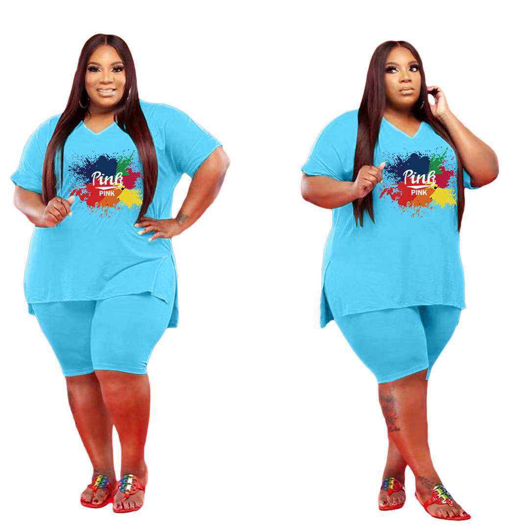 Q7183 New Fashion Women's V-образный вырез Plus Plus 5x Casual Suit