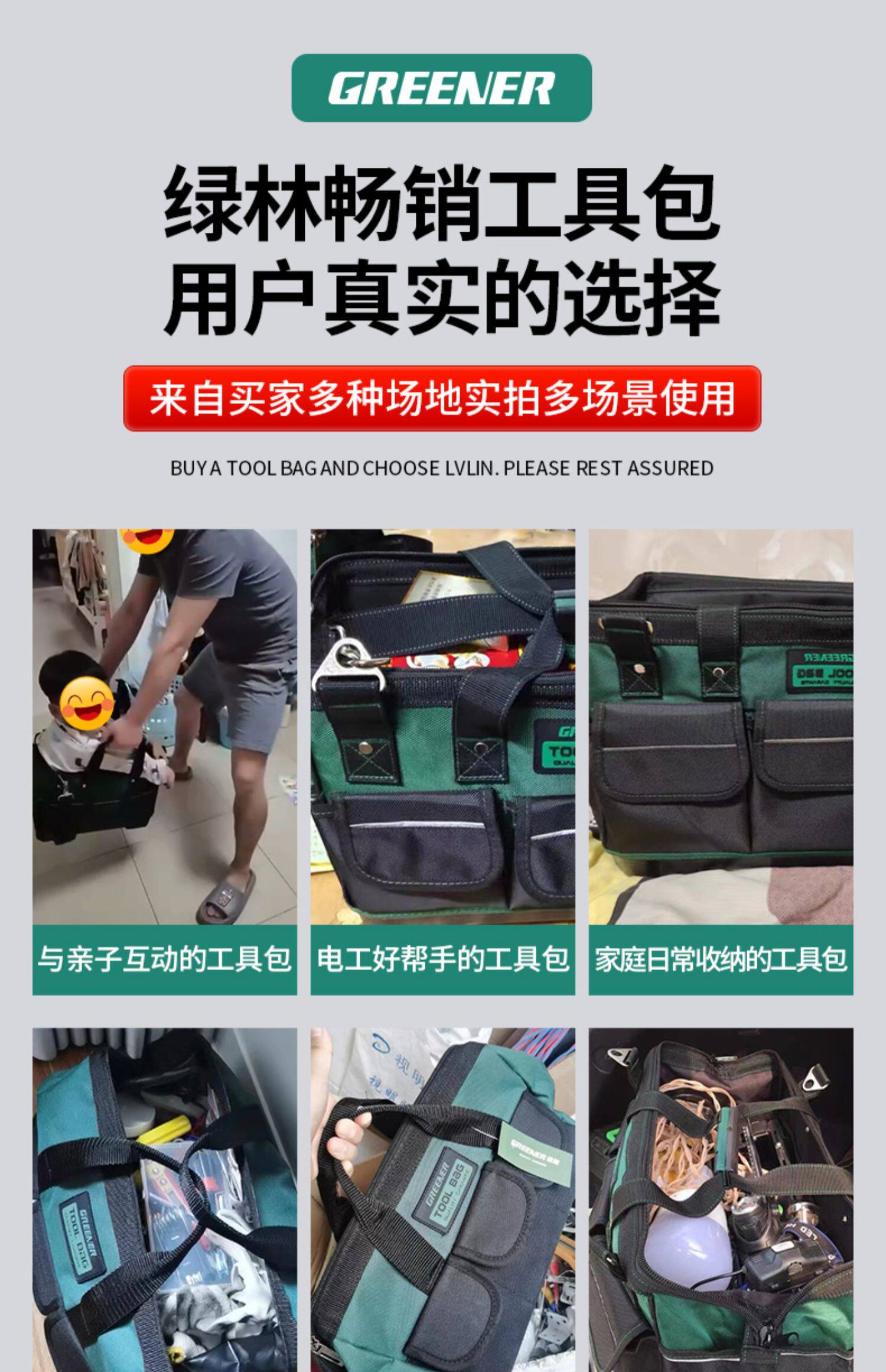 Комплект для инструментов зеленого леса Электрик Сильный и прочный мешок для инструментов Canvas Утолщенные деревообработки для хранения ручного ремонта аппаратное оборудование специально