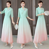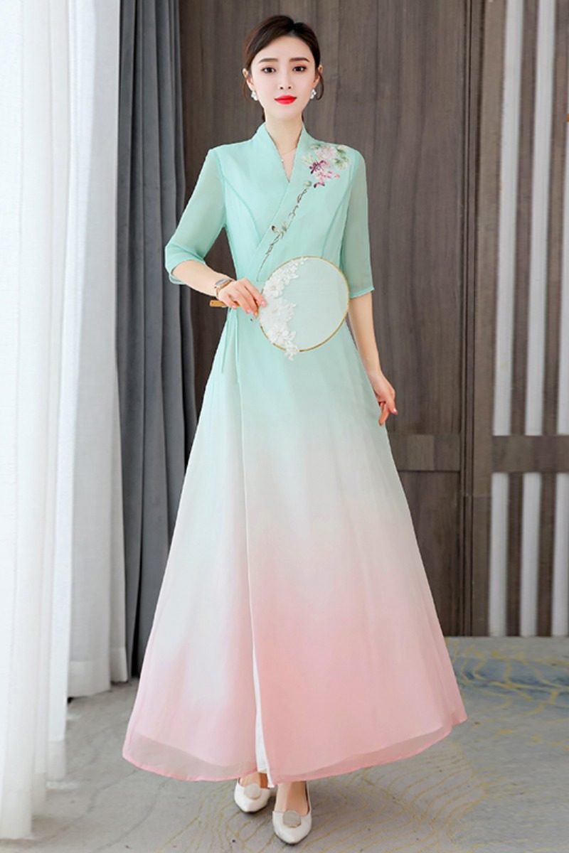 Ханьфу, летняя шелковая ретро длинная юбка, шелковое платье, китайский стиль