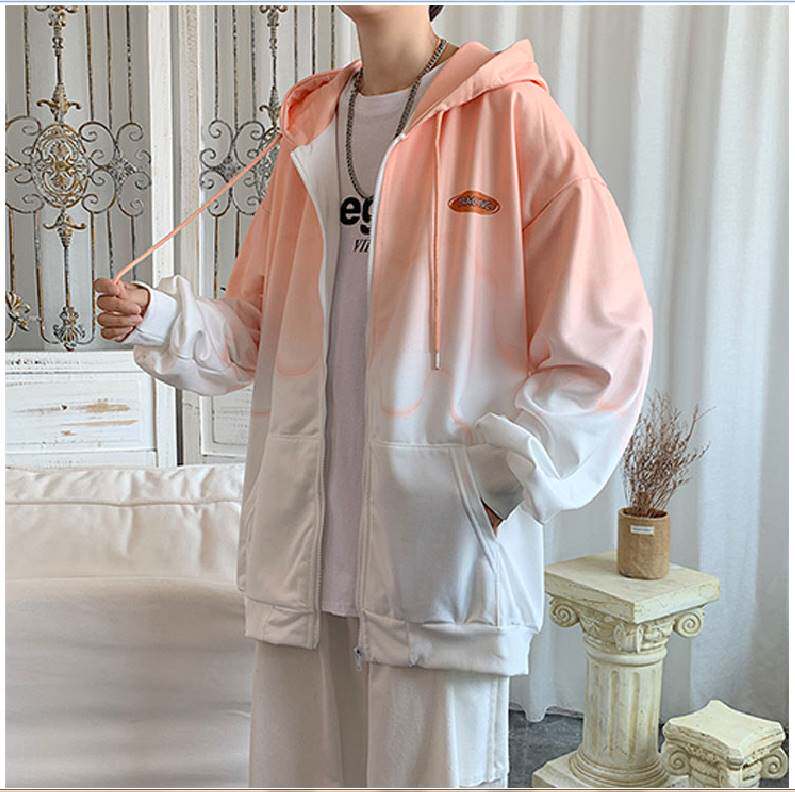 Демисезонная мужская толстовка с капюшоном, кардиган, трендовая куртка, градиент, оверсайз