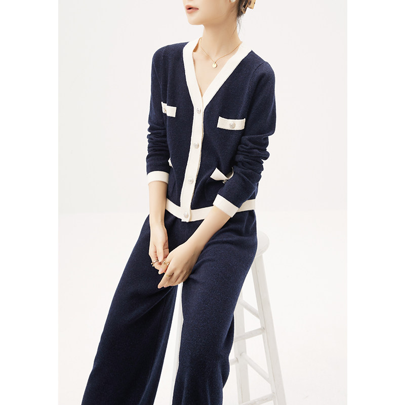 Шерстяной трикотажный кардиган, штаны, комплект, в стиле Шанель