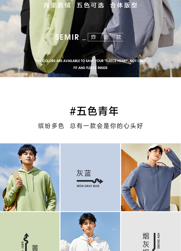 Semir, трендовая базовая толстовка, мужская цветная универсальная кепка с капюшоном, на шнурках