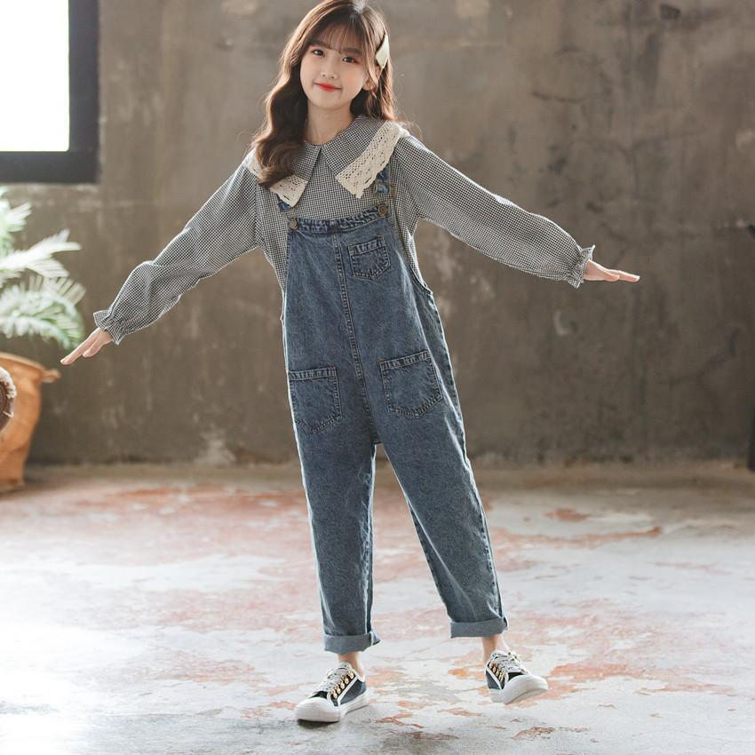 Детский комбинезон, осенние джинсы, весенние штаны, в западном стиле, в корейском стиле, подходит для подростков