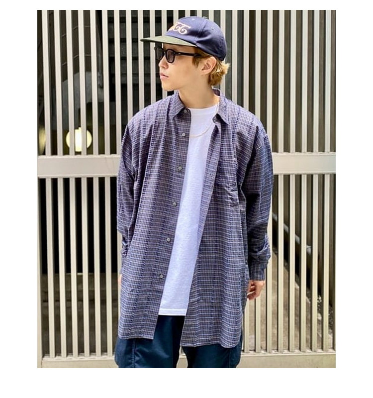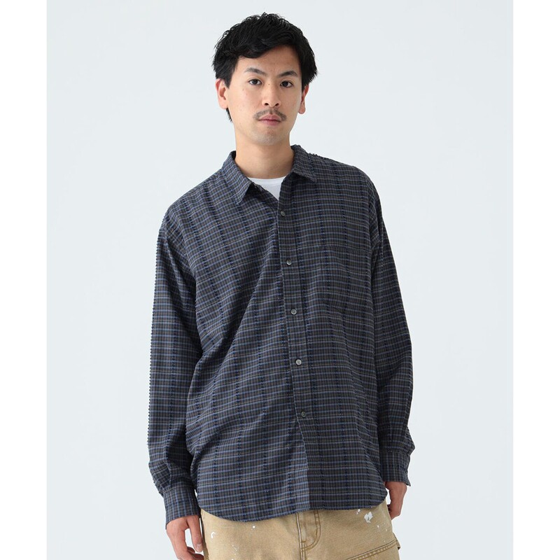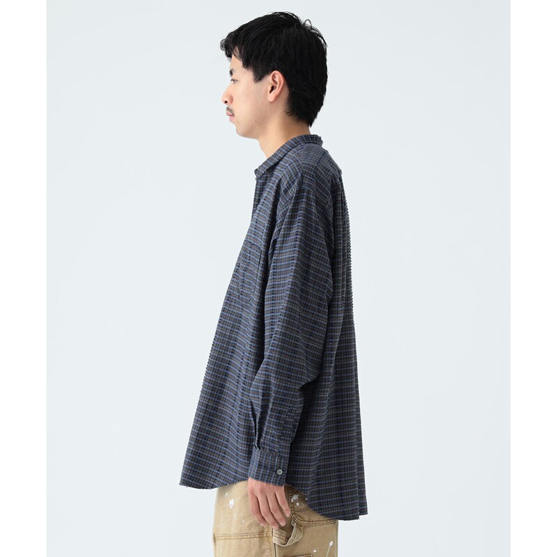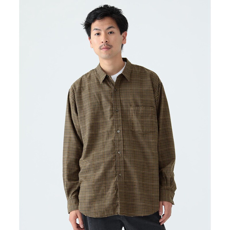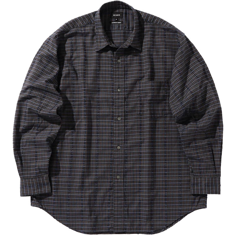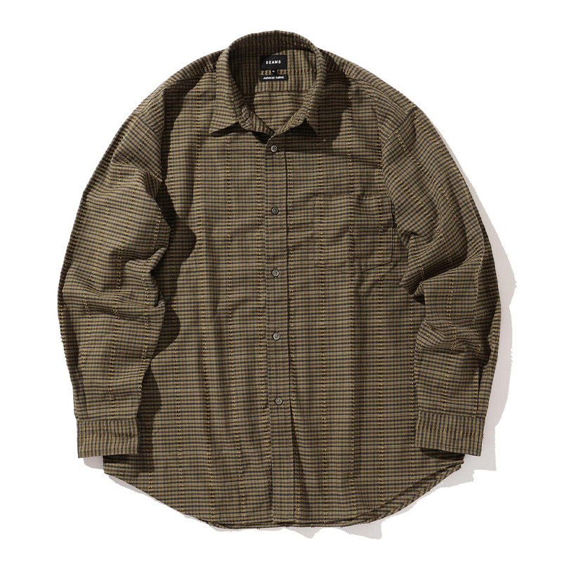 BEAMS Рубашка свободного кроя из хлопка и вискозы 22AW в винтажную клетку с длинными рукавами 11-11-0023-803