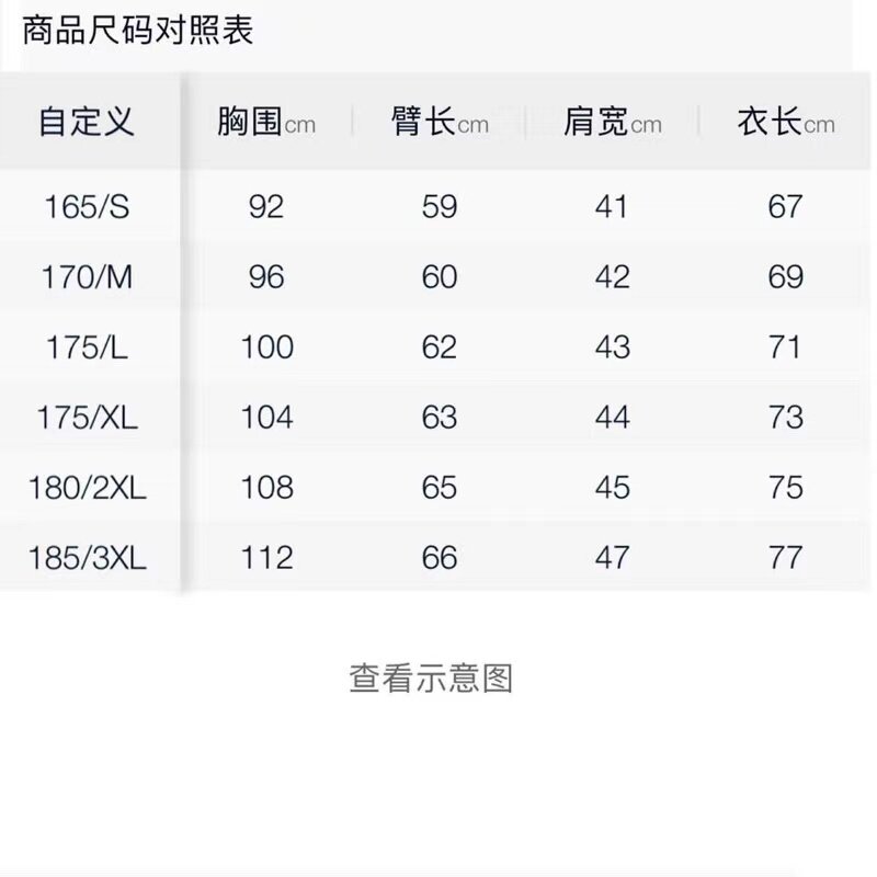 - = 185/XXL 175/L 180/XL
