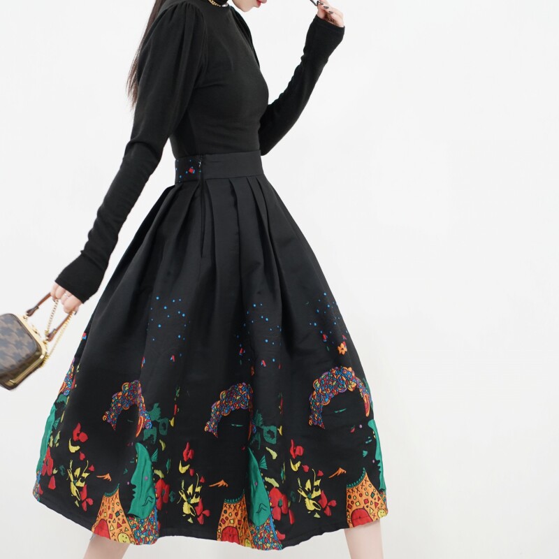 Веня национальная юбка цветового типа новые продукты высокие продукты с популярной популярной юбкой Halway Hepburn Hep Ben плит -символ с карманом