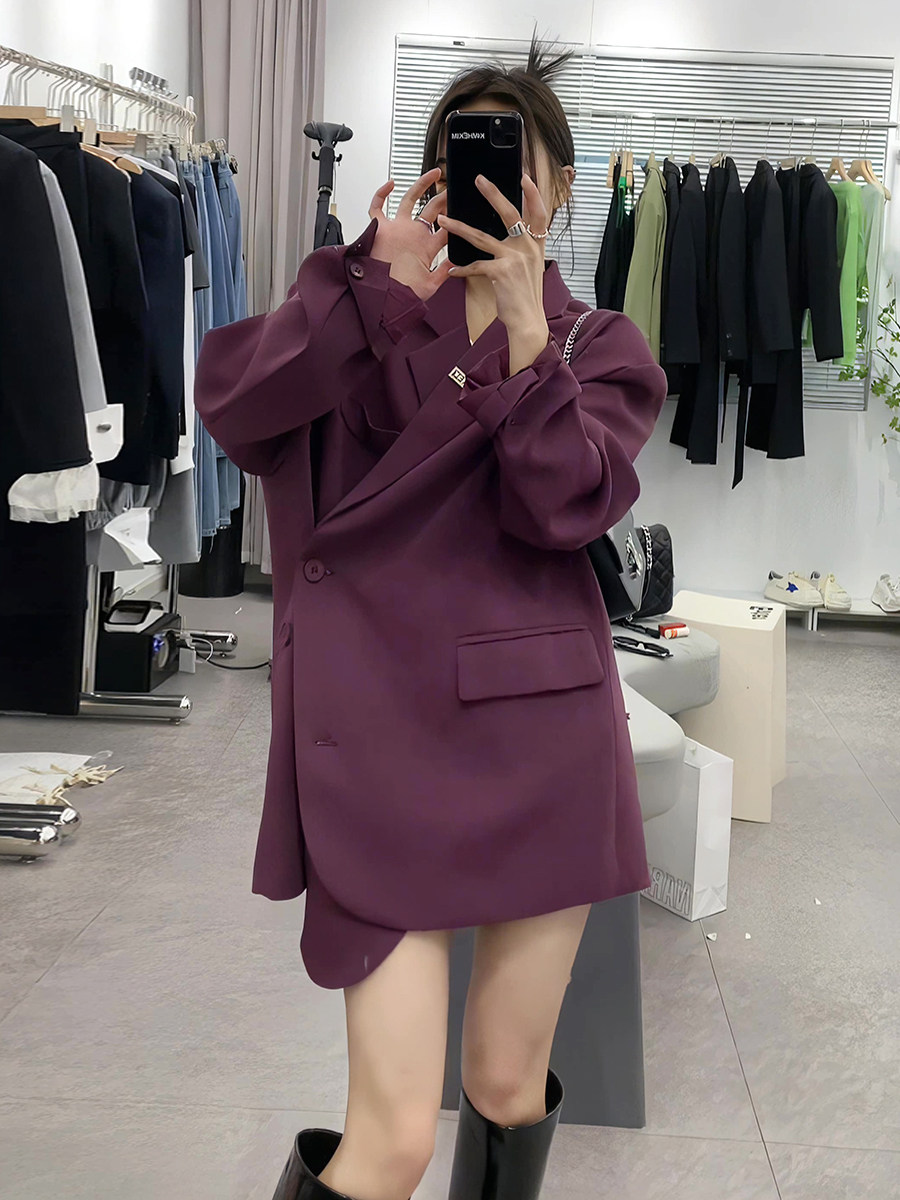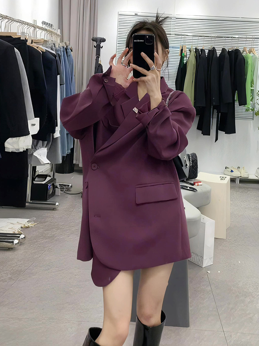 Длинный осенний пиджак классического кроя, средней длины, в западном стиле, свободный крой