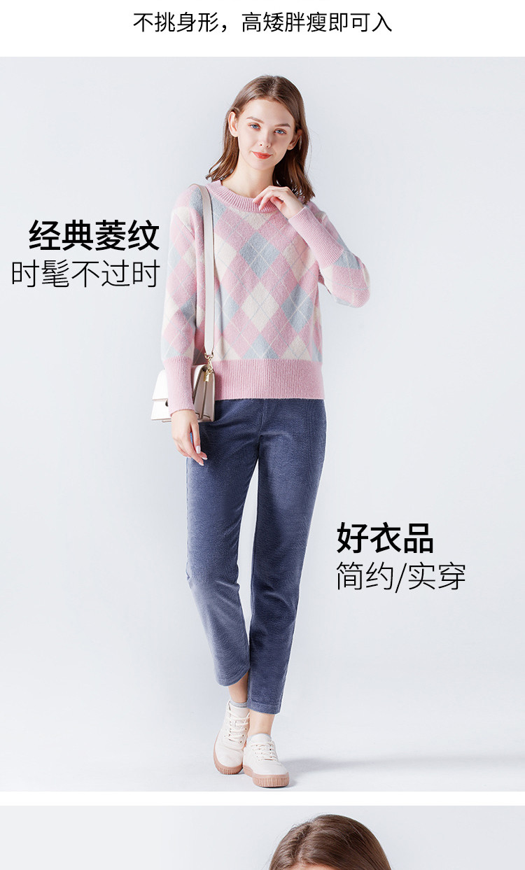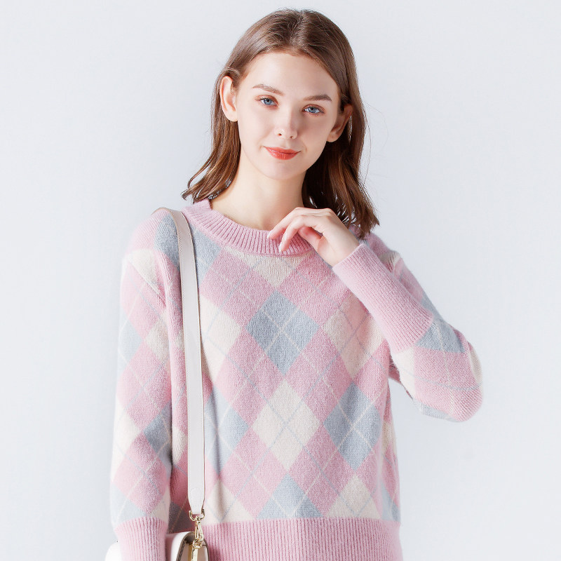 Розовый трикотажный демисезонный базовый приятный телу цветной свитер с ромбовидным узором
