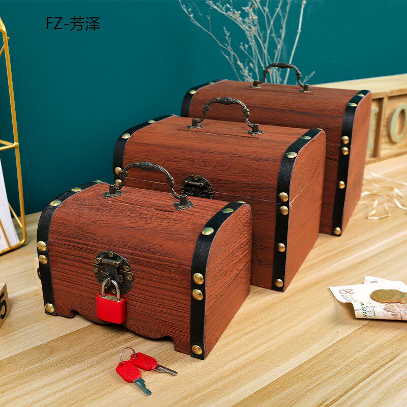 Деревянная ретро настольная портативная коробка для хранения, коробочка для хранения, деревянная коробка, копилка для денег
