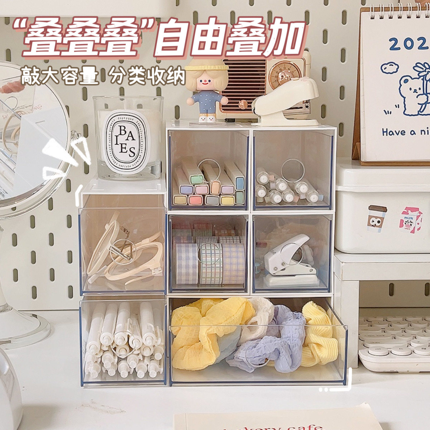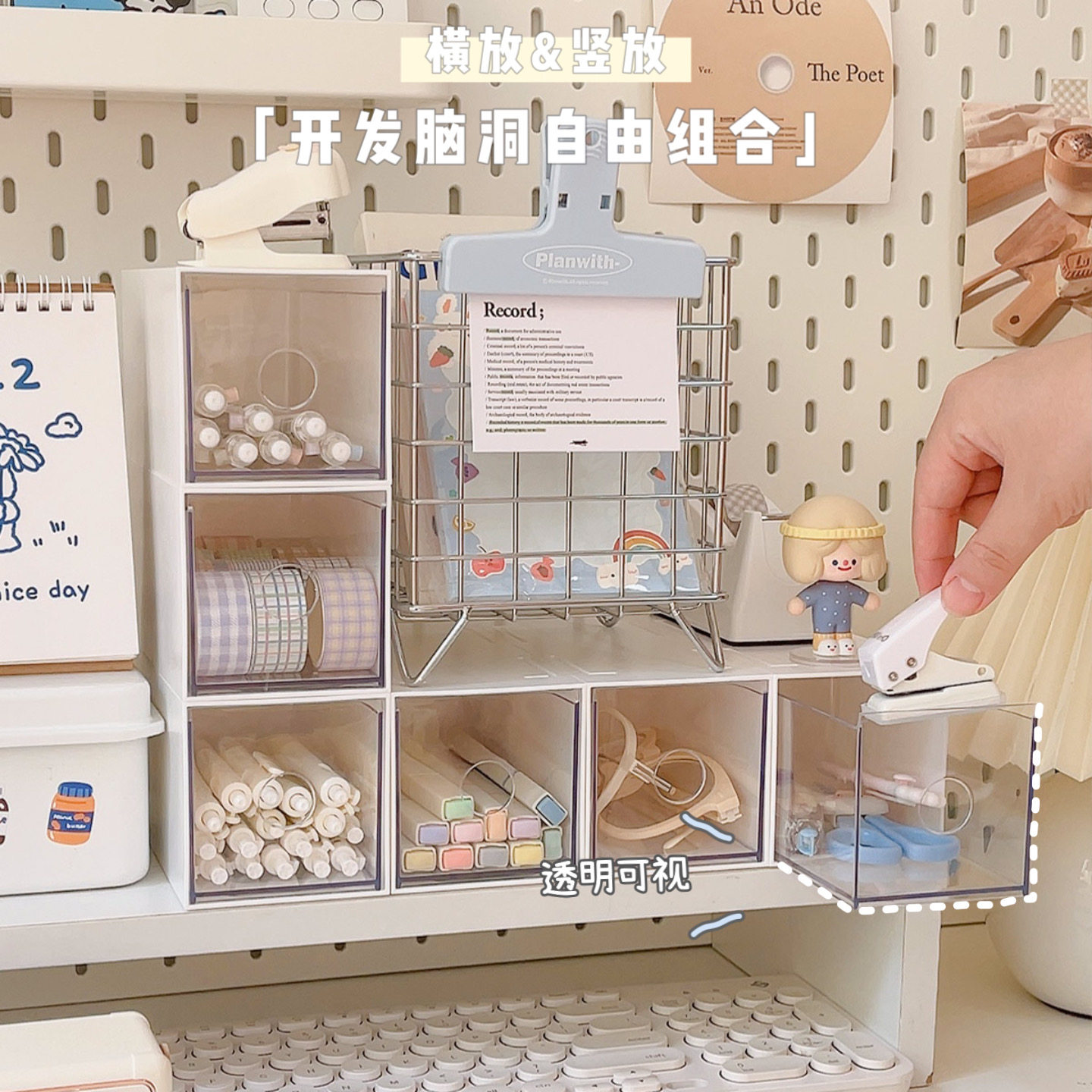 Простая коробка для хранения канцелярских товаров Студенческое настольное хранение ящика -тип прозрачный стол, чтобы закончить общежитие шкафа