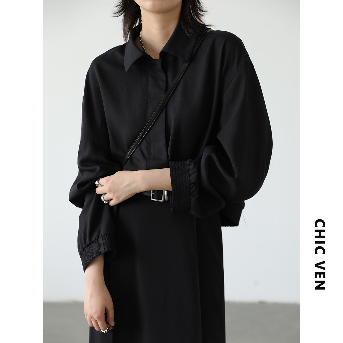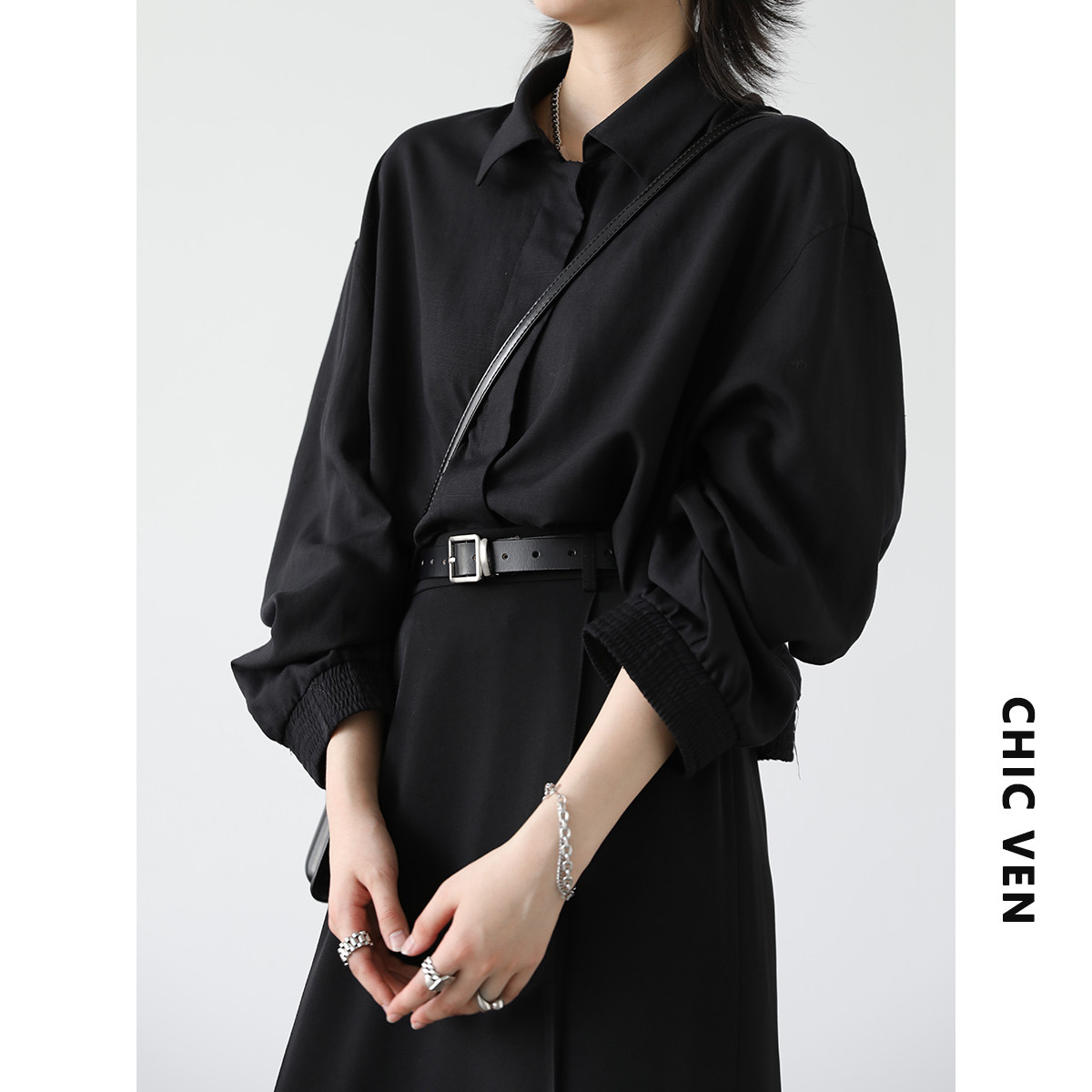 Чиквен "нет бинг самостоятельно" французская и свободная темная линия линейная линейная рубашка женская осень