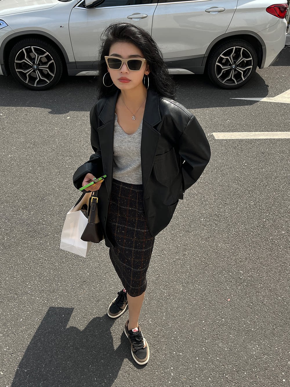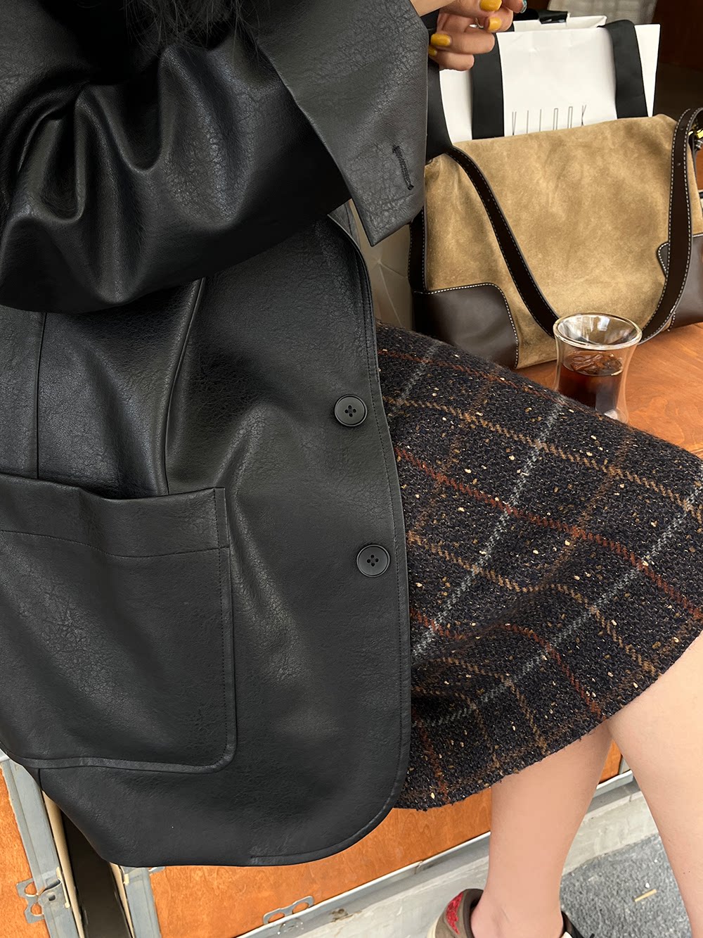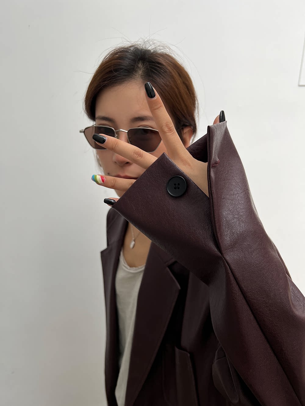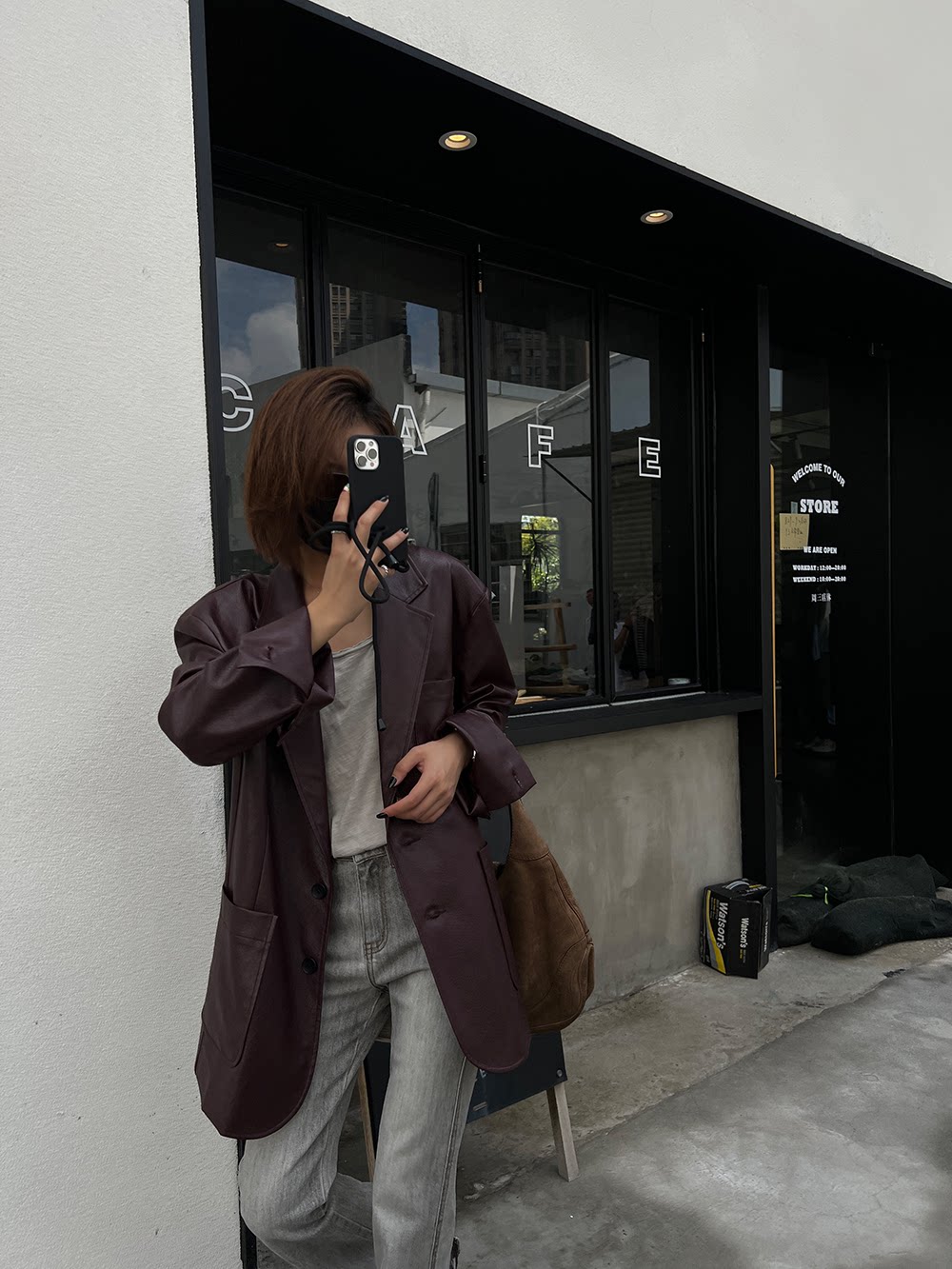 Костюм, осенняя ретро полиуретановая куртка, коллекция 2023, изысканный стиль, оверсайз