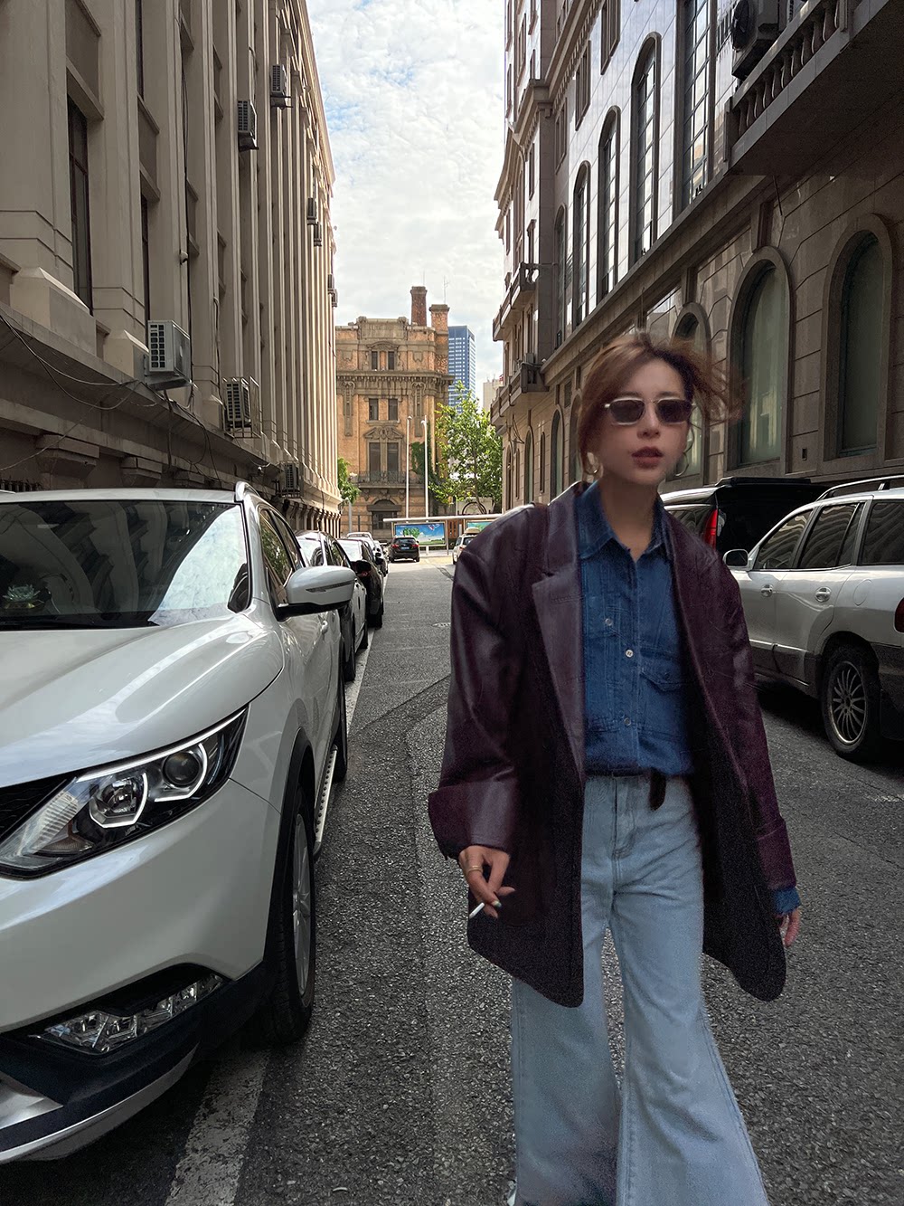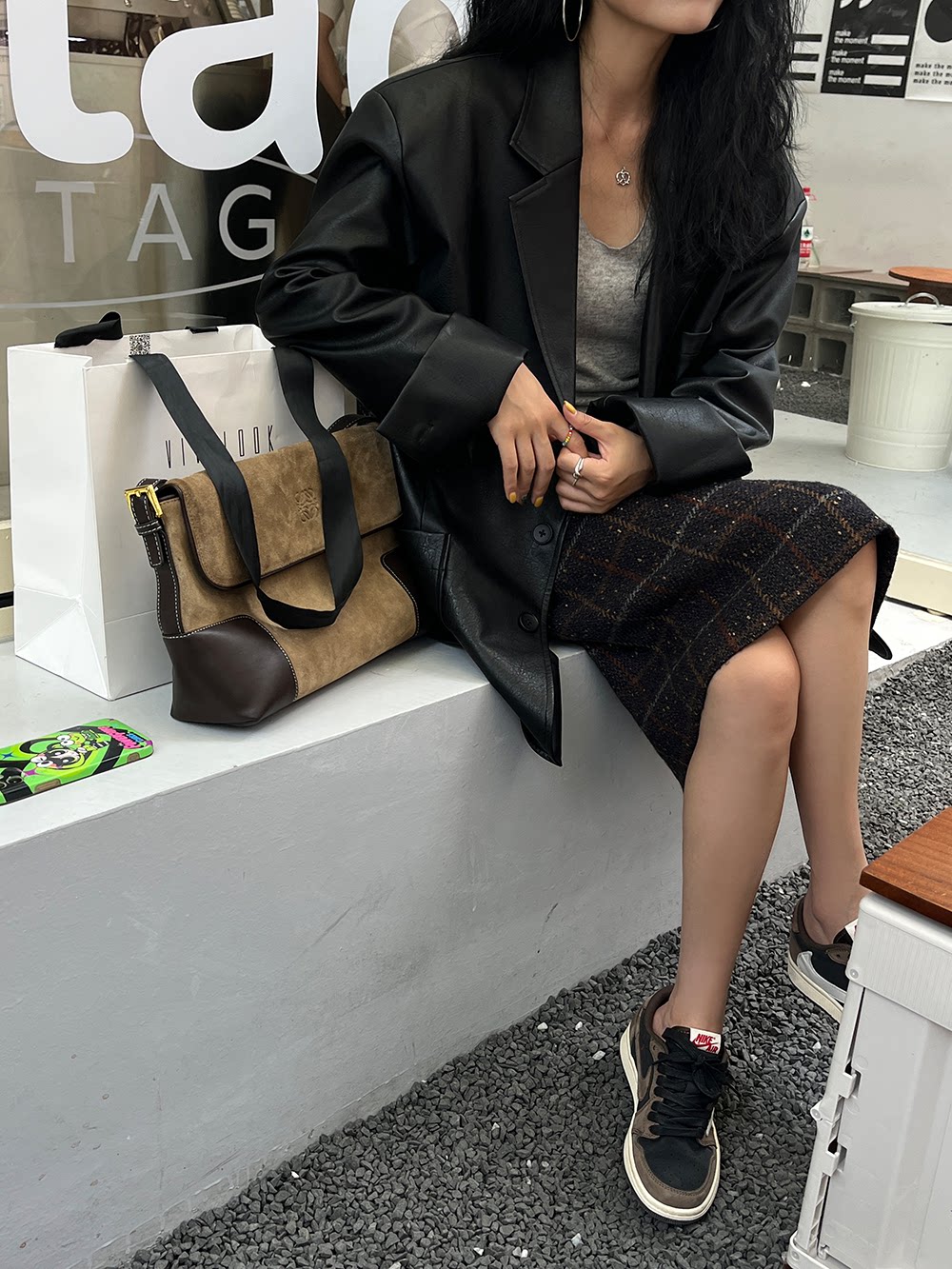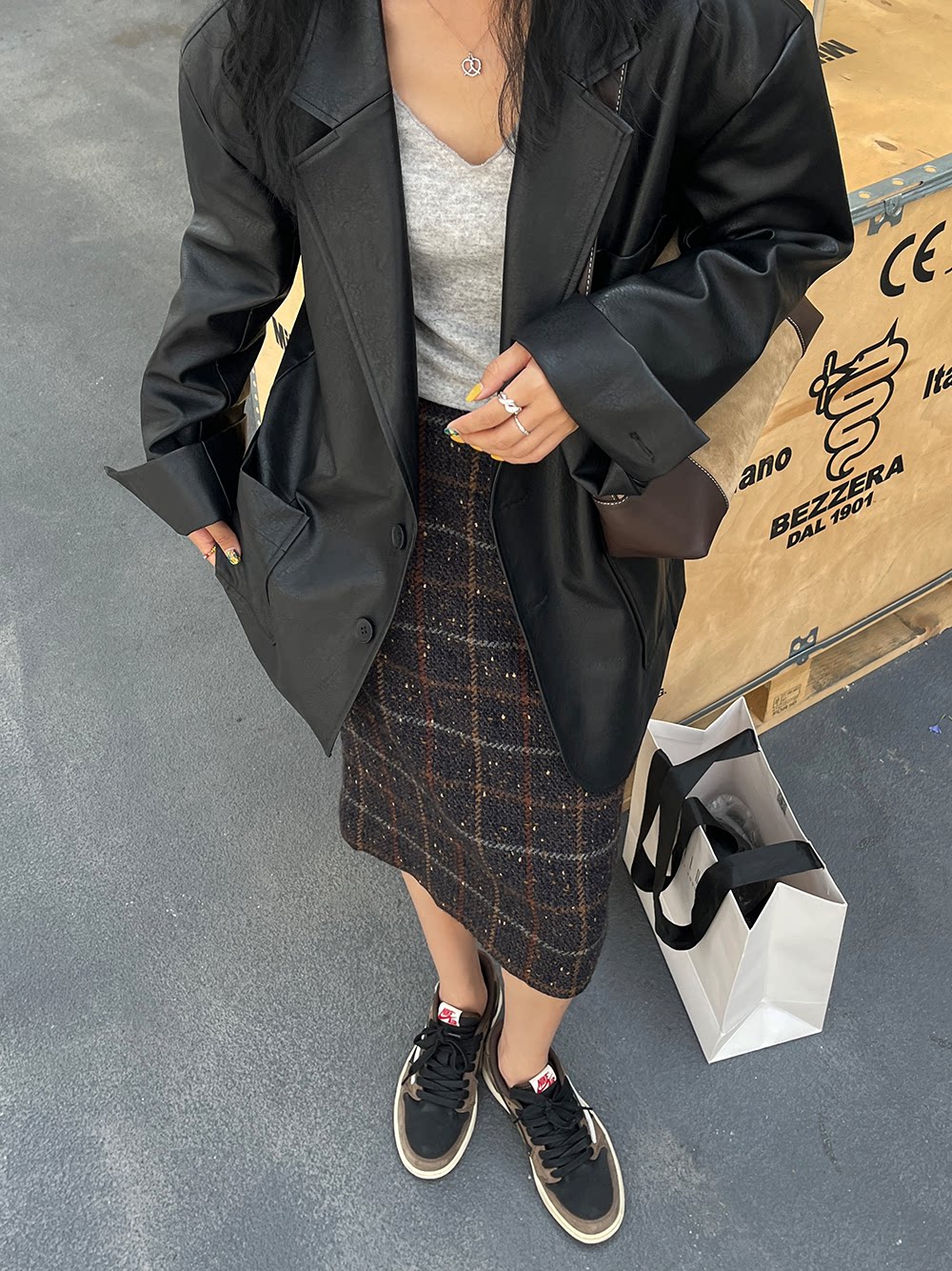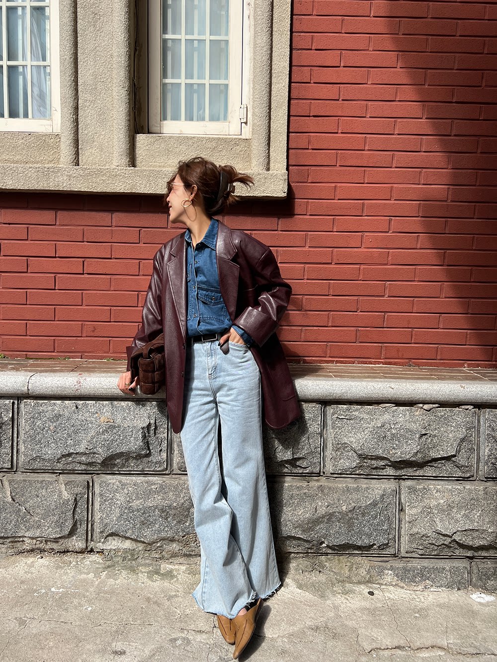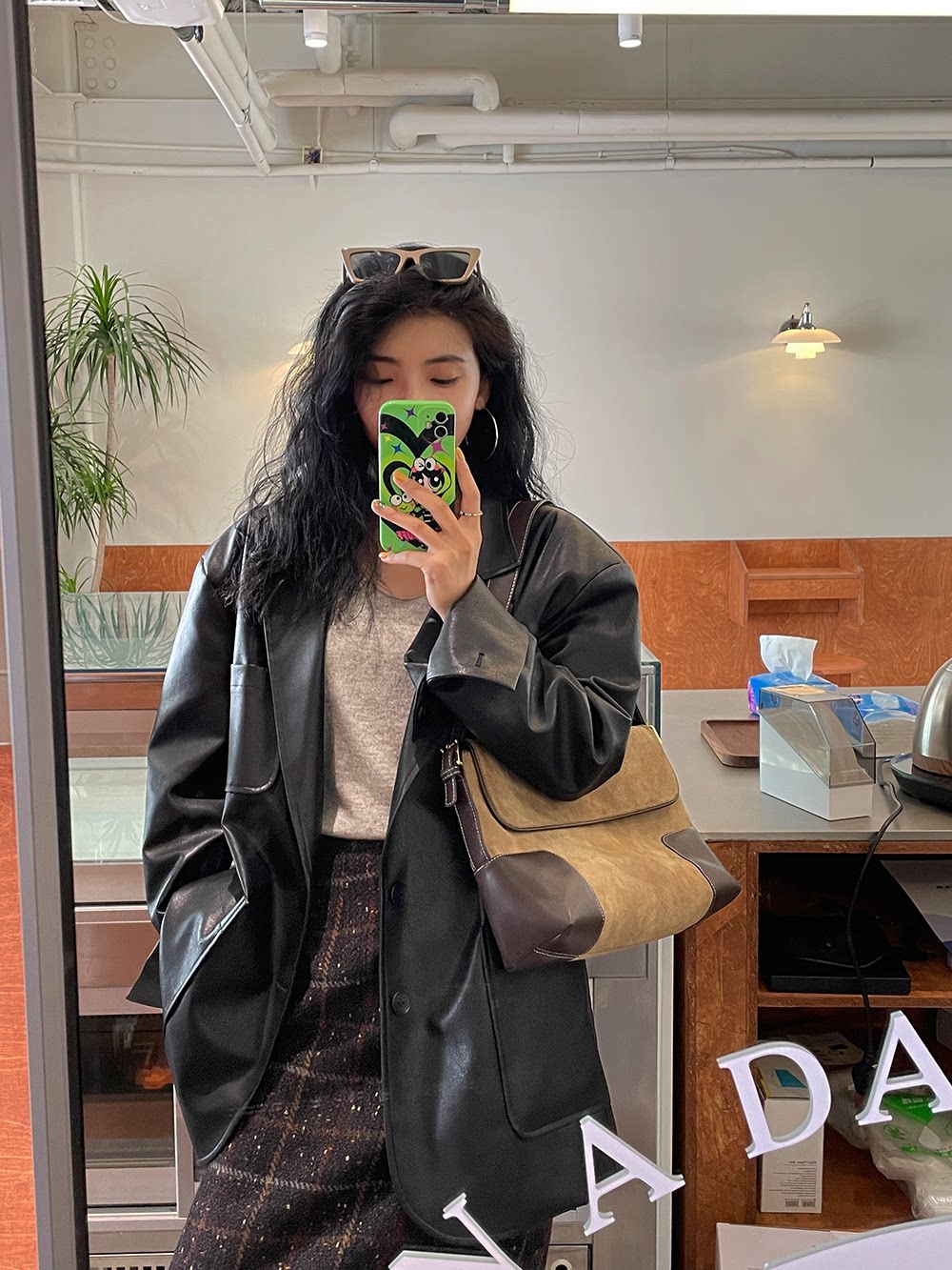 Костюм, осенняя ретро полиуретановая куртка, коллекция 2023, изысканный стиль, оверсайз
