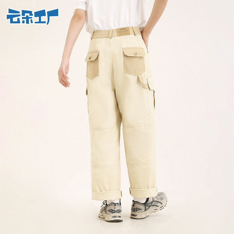 云朵工厂 Униформа медсестры, дизайнерские бежевые штаны для отдыха, свободный прямой крой, тренд сезона