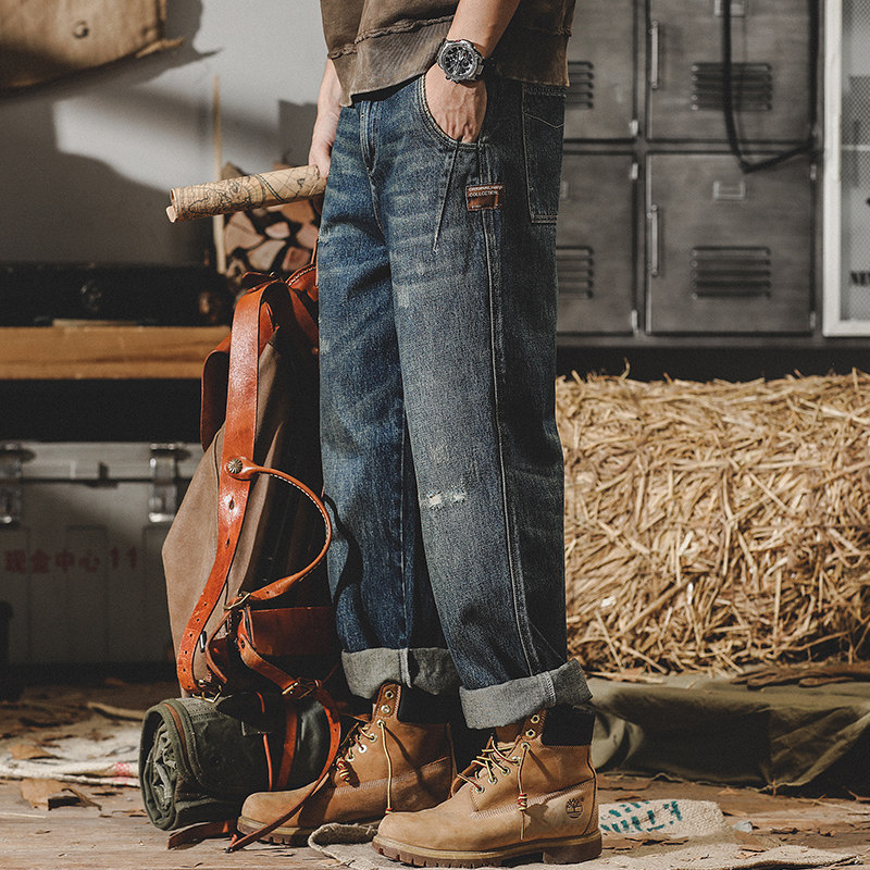 Прямые свободные джинсы, мужские демисезонные повседневные брюки для отдыха, штаны, в американском стиле, коллекция 2023, осенние