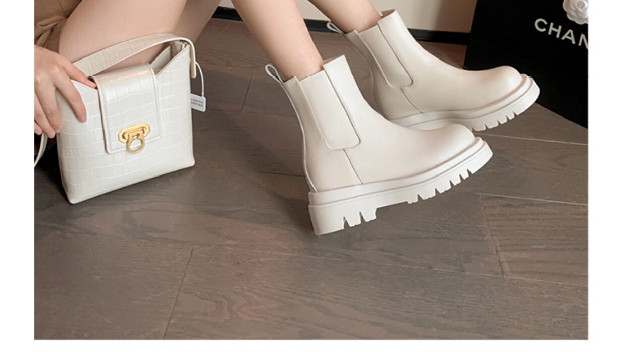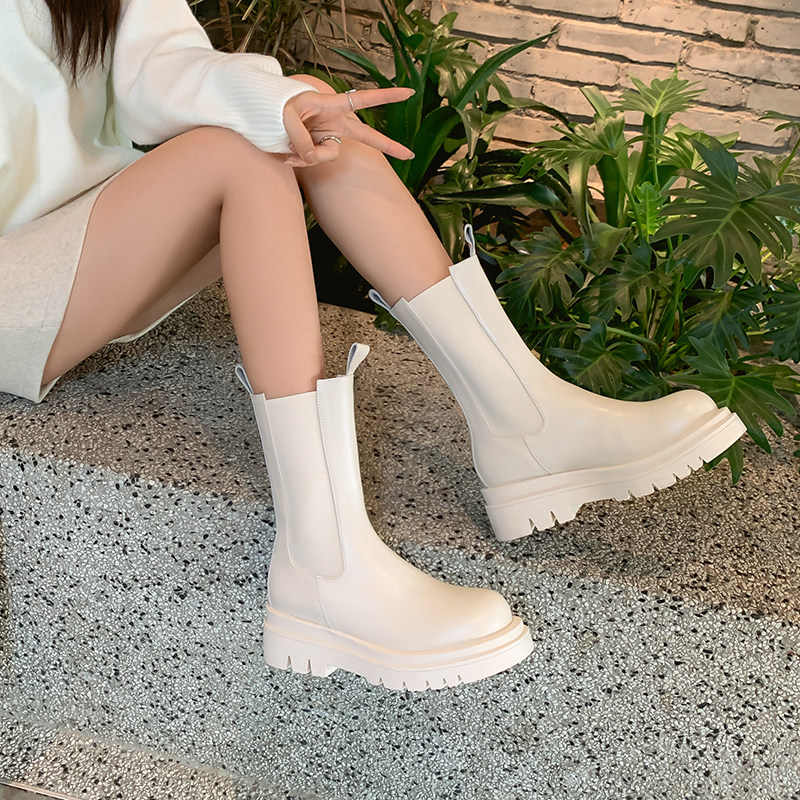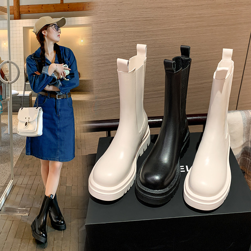 Martens, белые короткие сапоги, ботинки на платформе, челси, из натуральной кожи, коллекция 2022, средней длины
