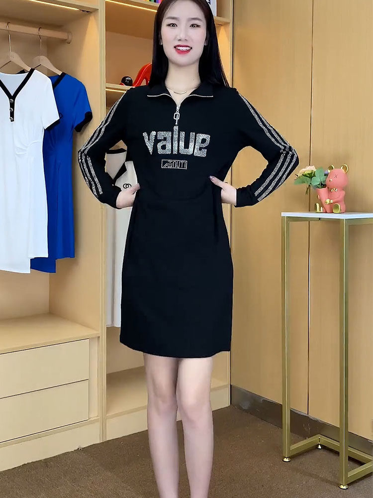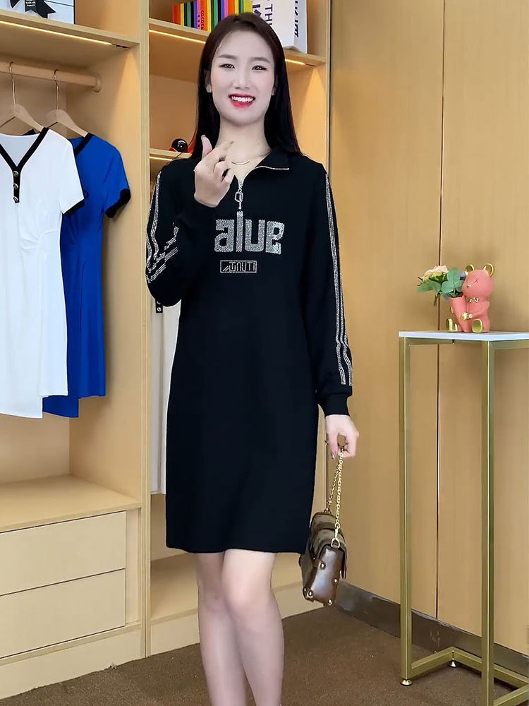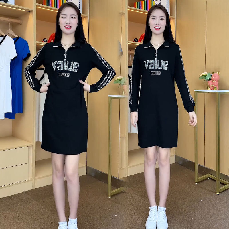 Весеннее осеннее платье, длинная юбка, 2023, в корейском стиле, в западном стиле, средней длины