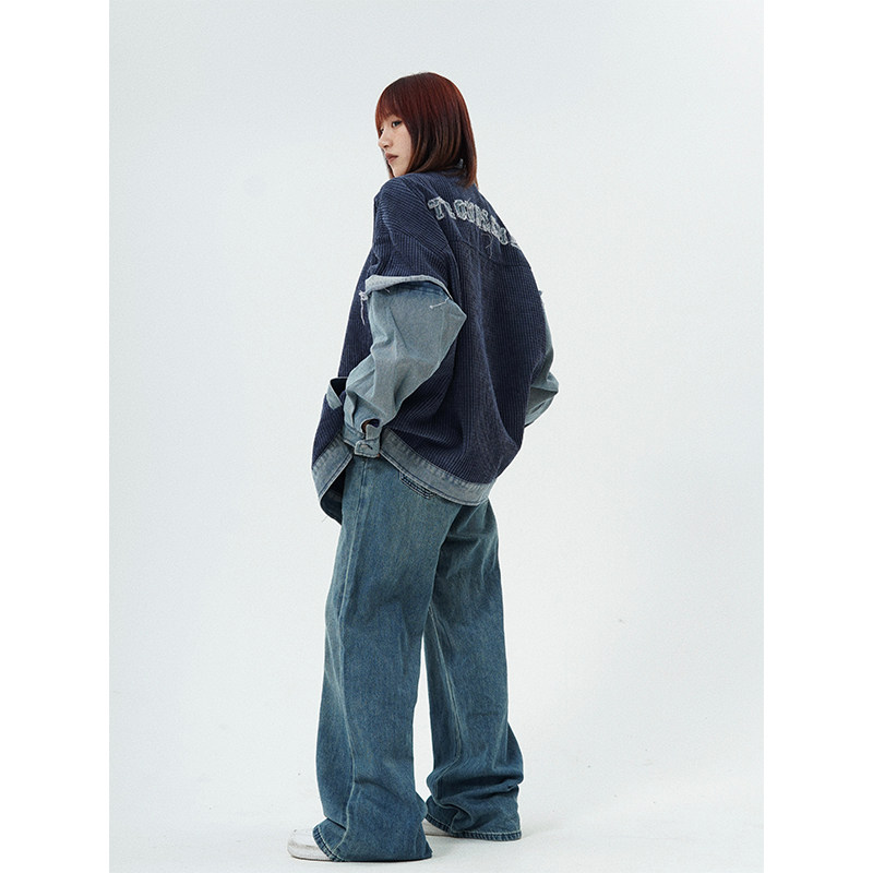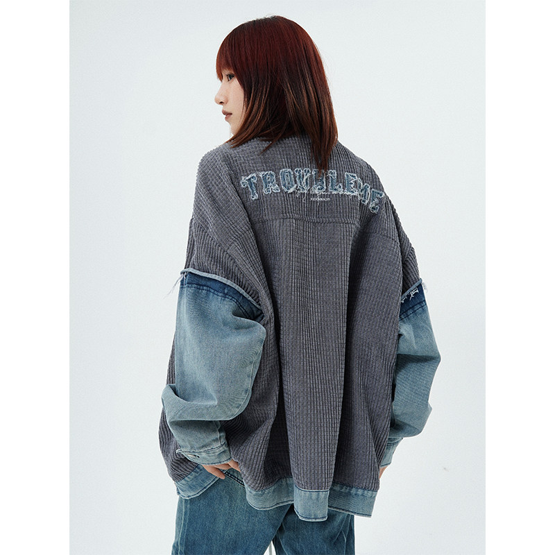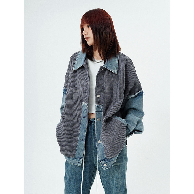 Ретро вельветовая лампа, джинсовая трендовая куртка подходит для мужчин и женщин для отдыха, в американском стиле, оверсайз