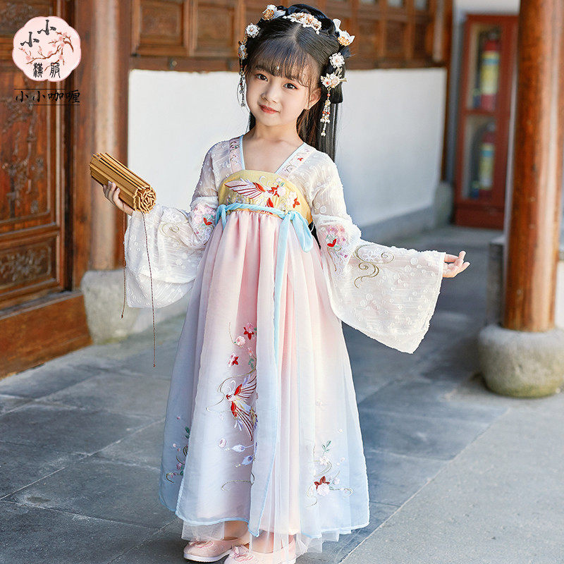 Ханьфу, юбка, детское платье, осеннее, с вышивкой, китайский стиль, детская одежда