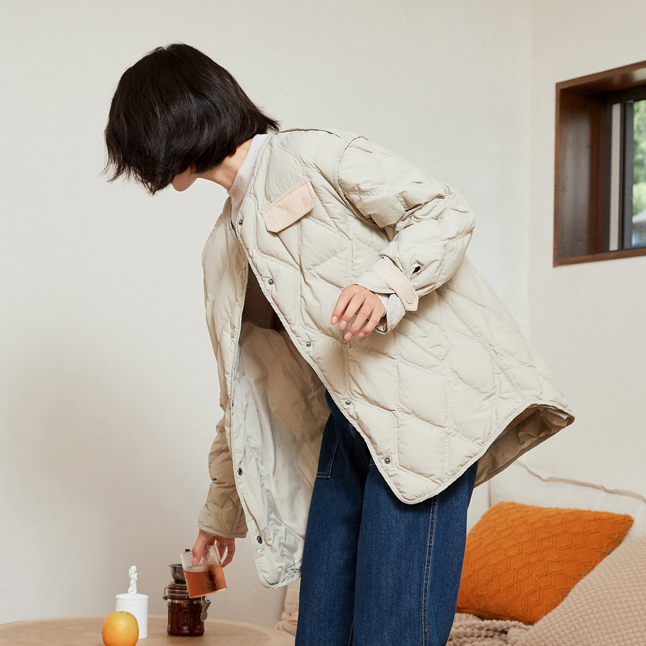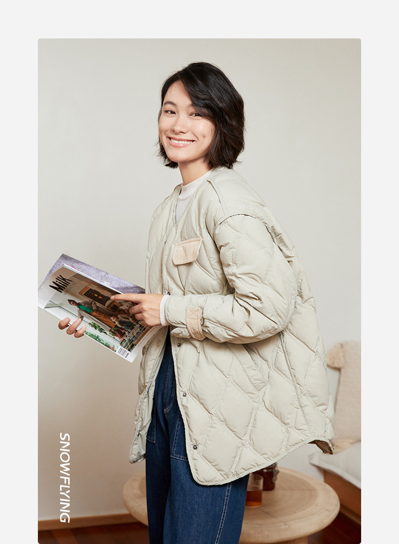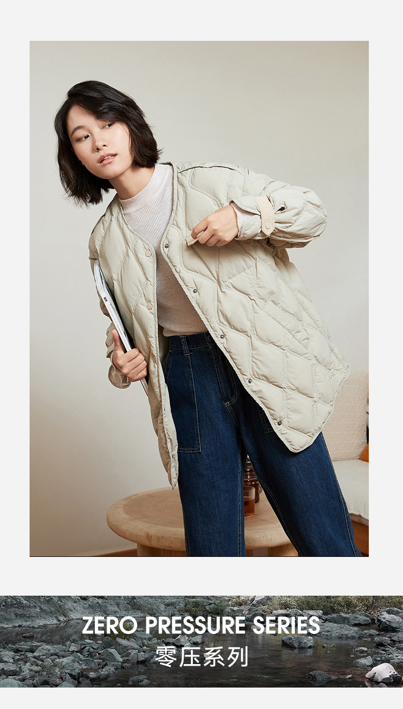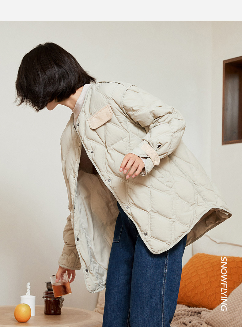 Демисезонный легкий и тонкий комфортный пуховик с круглым воротником