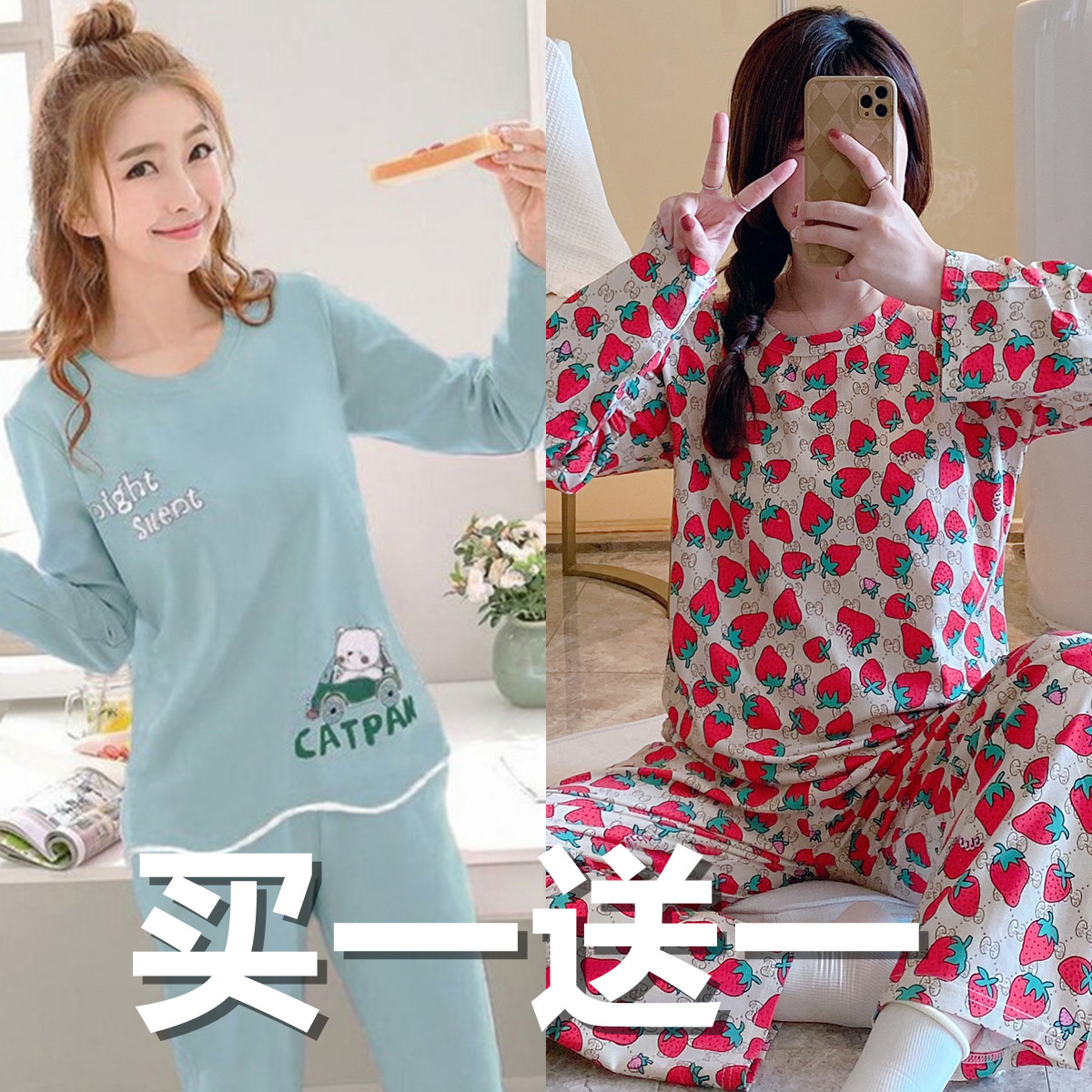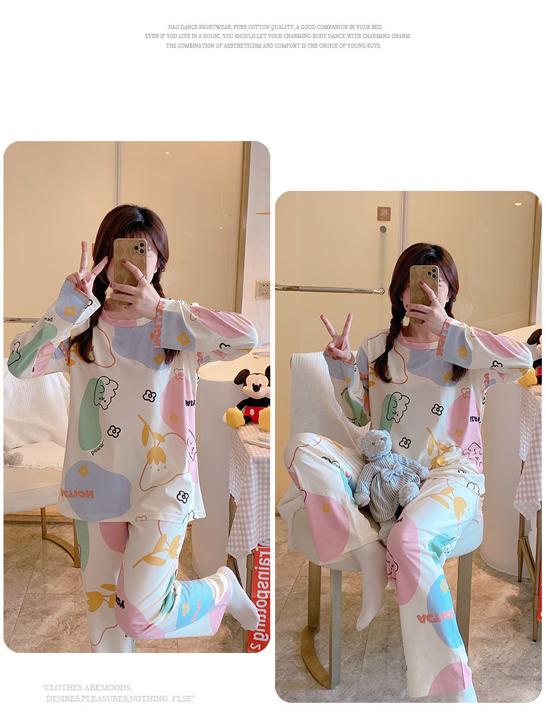 Осенняя пижама, хлопковый милый лонгслив, демисезонный тонкий комплект, коллекция 2022