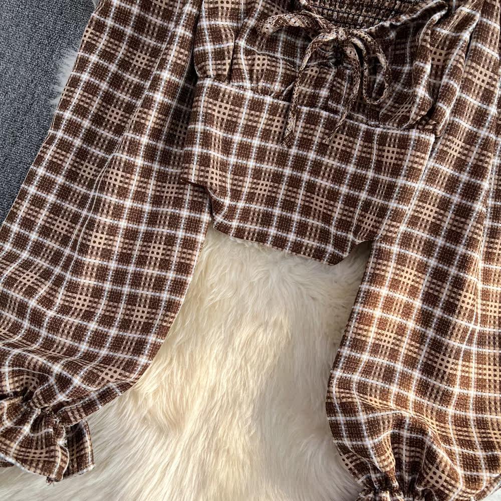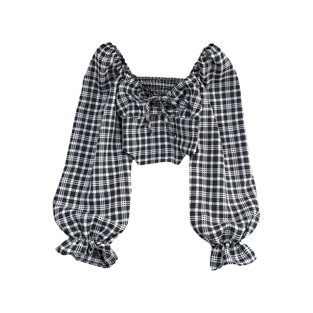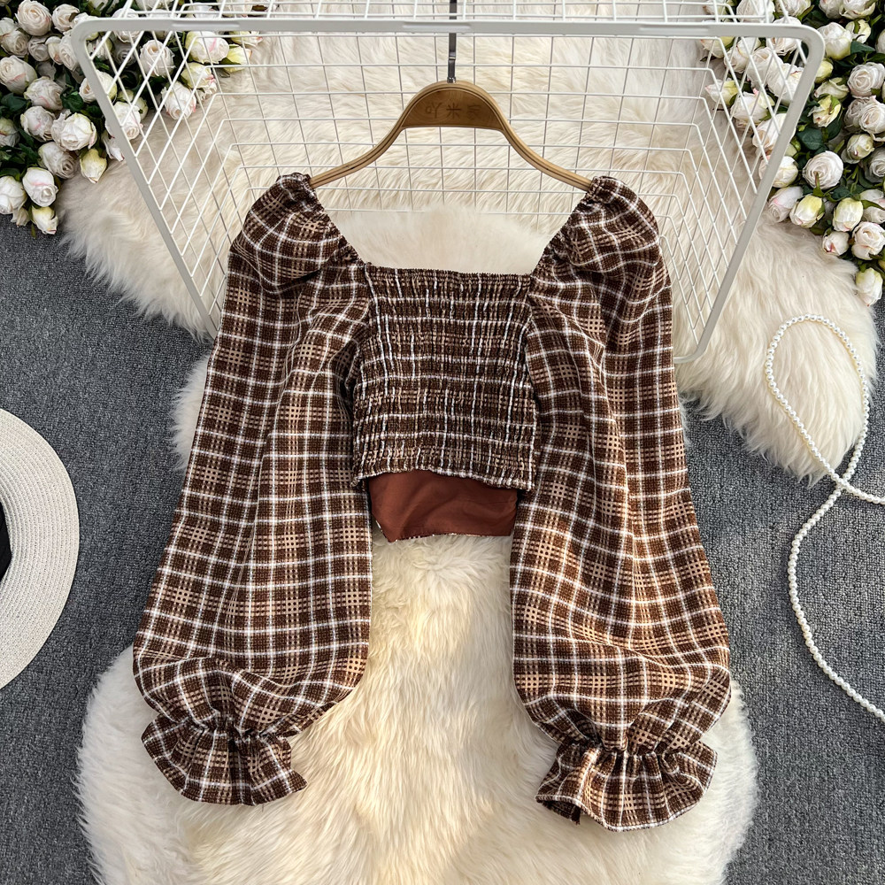 Осенний лонгслив, короткая рубашка, 2023, в корейском стиле, в западном стиле, квадратный вырез, облегающий крой