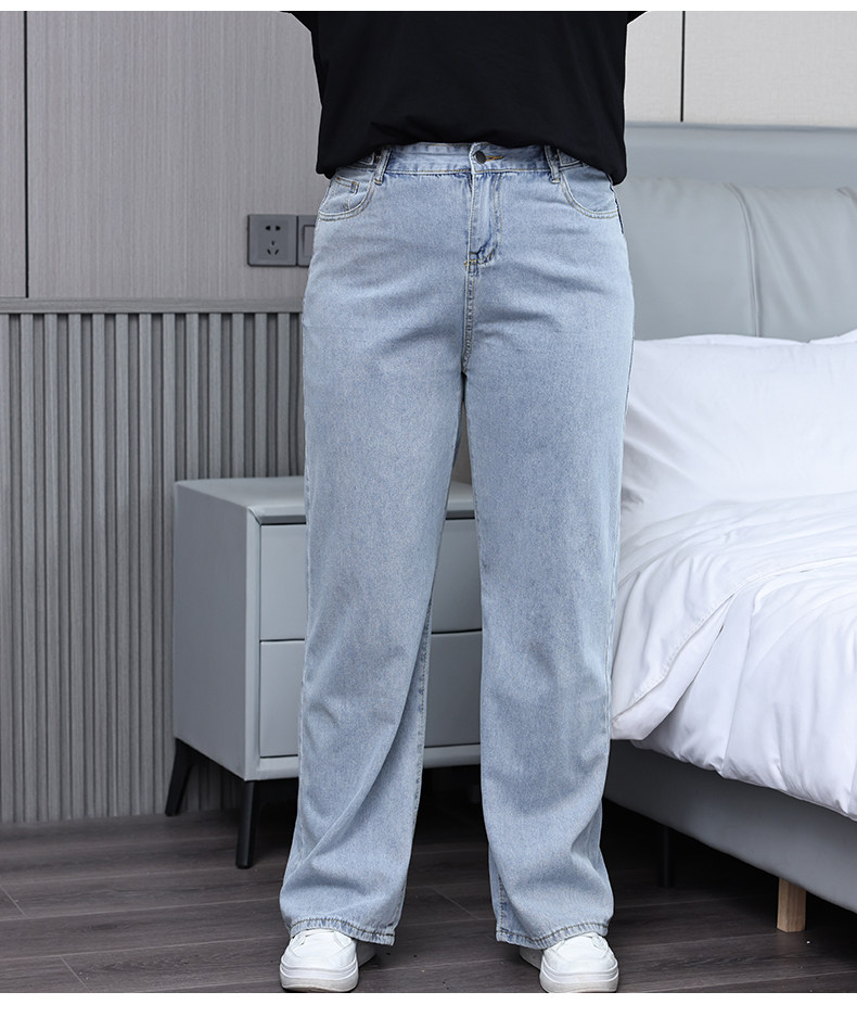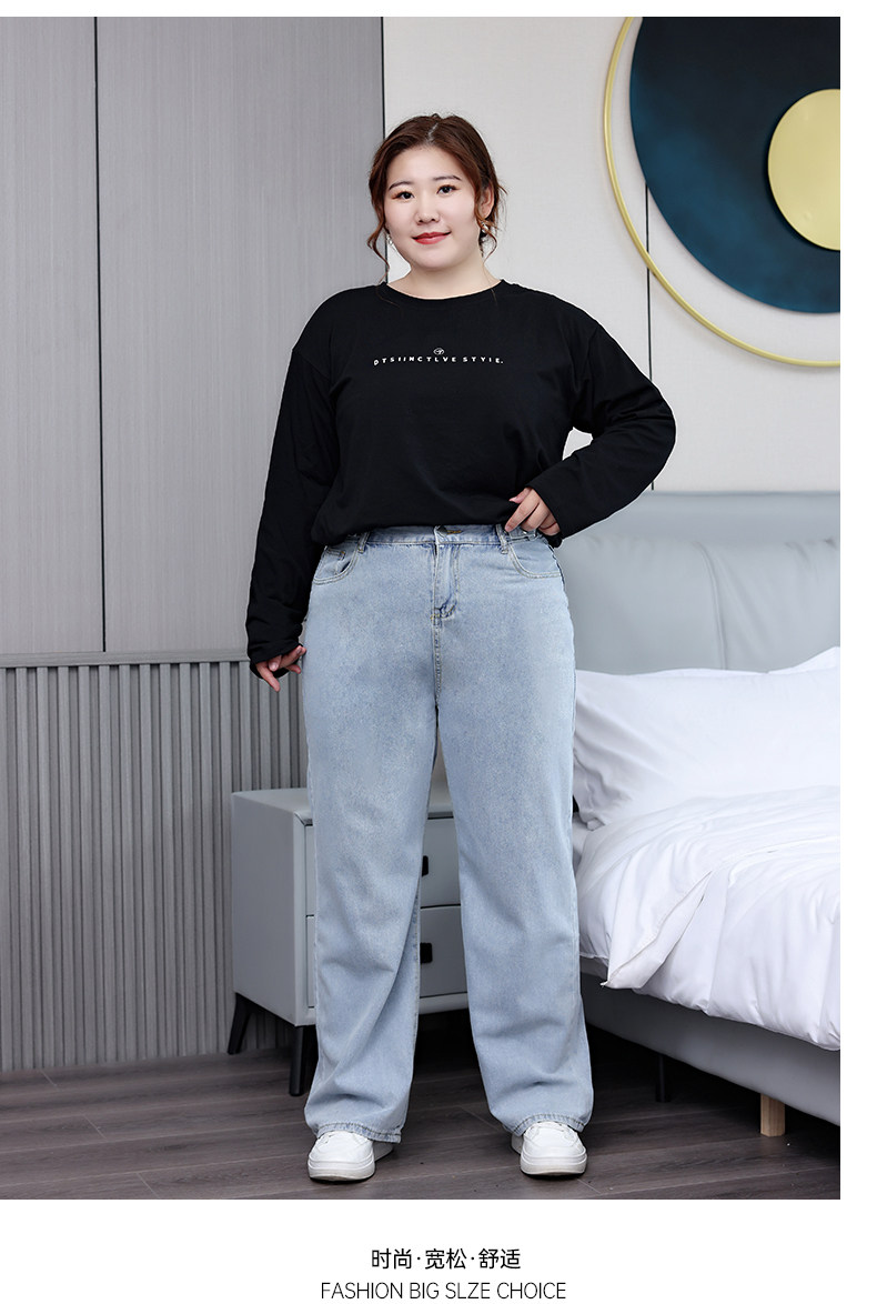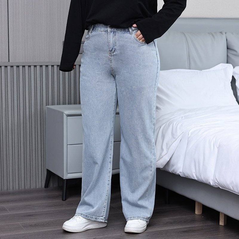 Осенние джинсы для отдыха, штаны, большой размер, свободный прямой крой