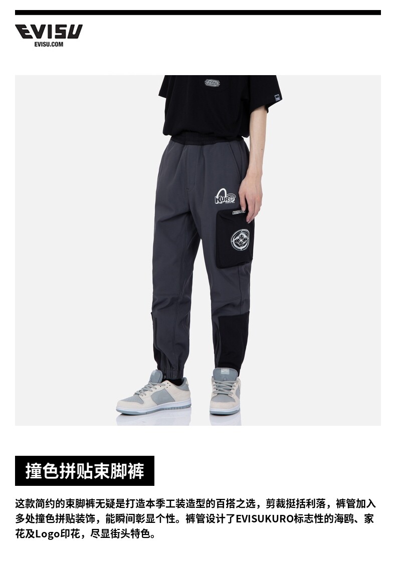【Тот и тот же стиль Wang Yibo】 evisu Contrast Colrost Collage Lake Sports и повседневные брюки с многоканальными штанами ноги