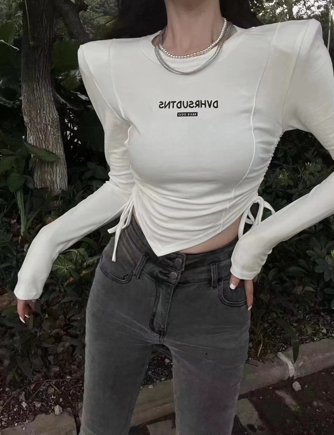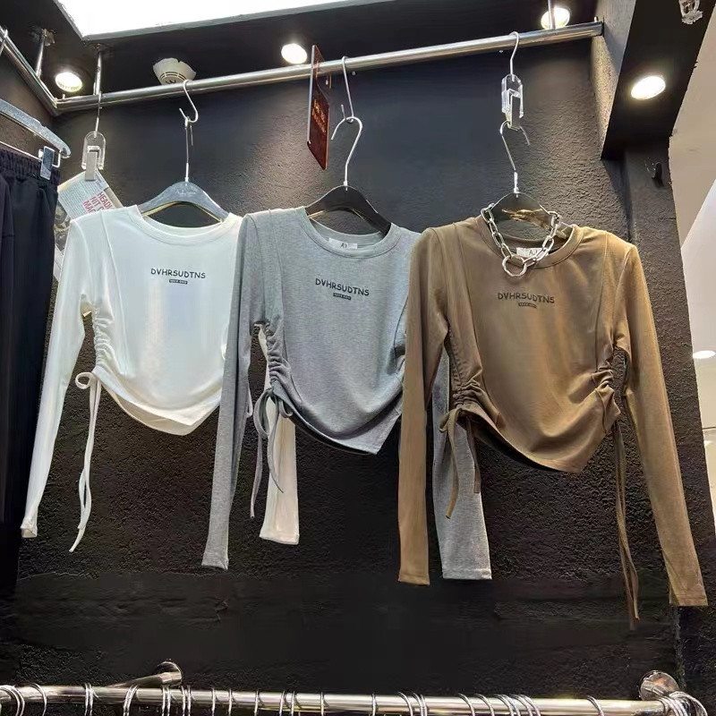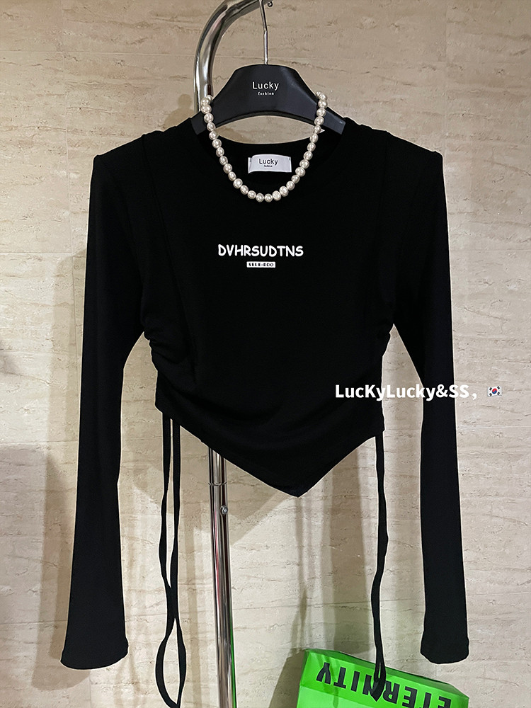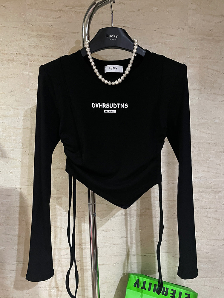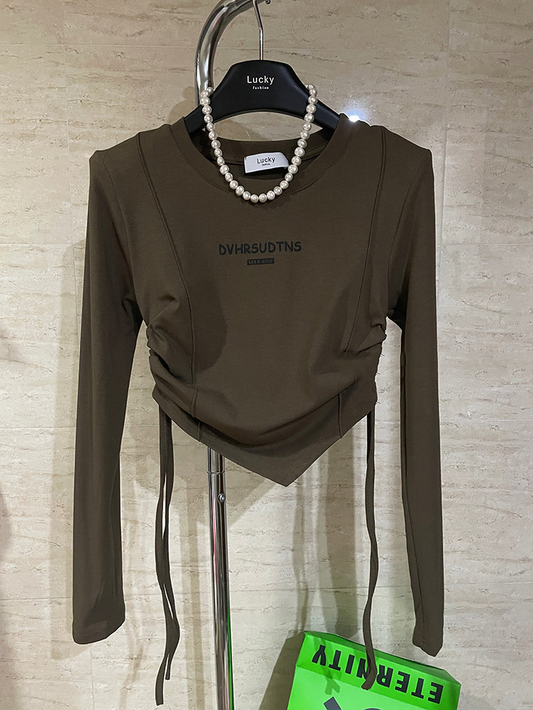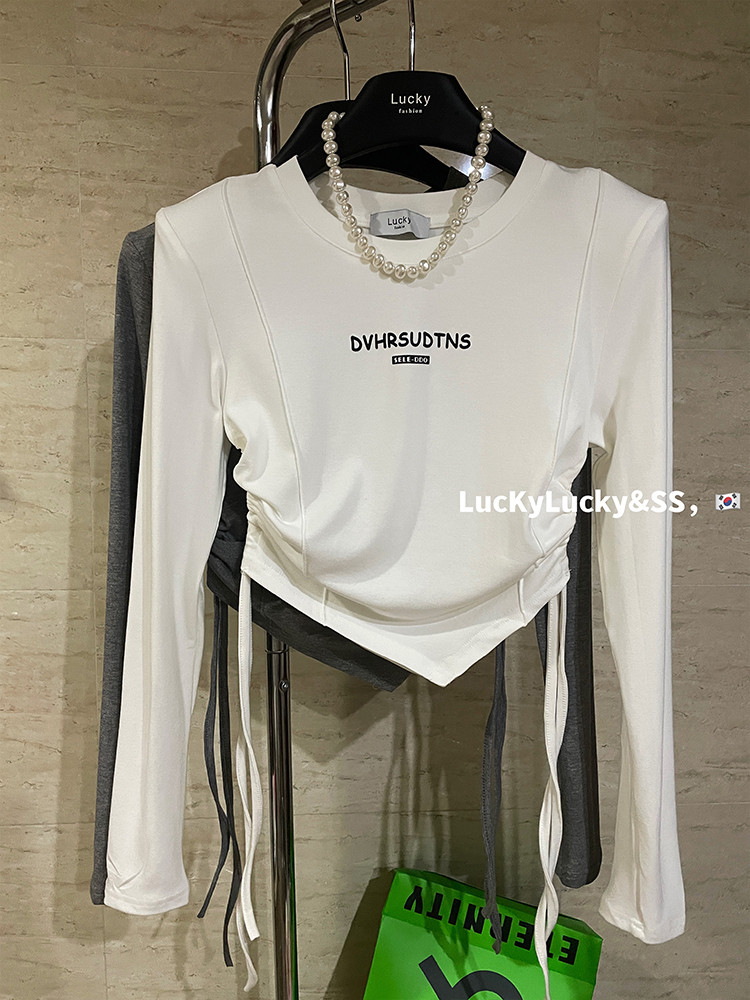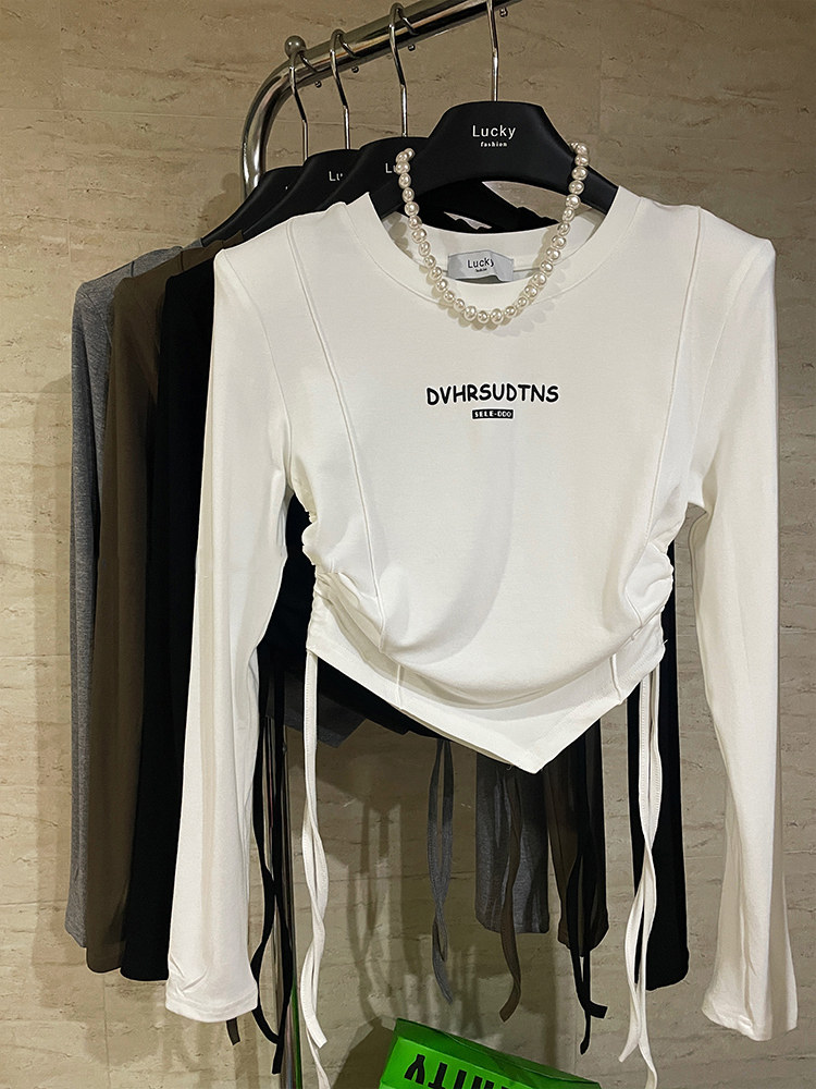 Осенний лонгслив, приятная телу футболка, 2022, в корейском стиле, в американском стиле, облегающий крой, на шнурках
